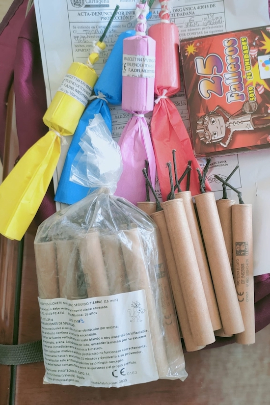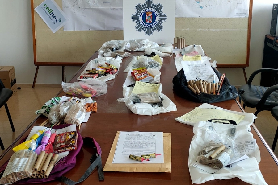 La Policía Local llevó a cabo diferentes intervenciones el pasado domingo con motivo de la 'Noche de San Juan'. Entre ellas destacaron diferentes decomisos de productos pirotécnicos prohibidos para su uso y material pirotécnico intervenido a menores que, por su edad y al no estar acompañados, no podían disponer de él por cuestiones de seguridad. Estos decomisos se produjeron en lugares como El Ensanche, Nueva Cartagena y Polígono Santa Ana. También hubo actuaciones para atajar actos vandálicos
