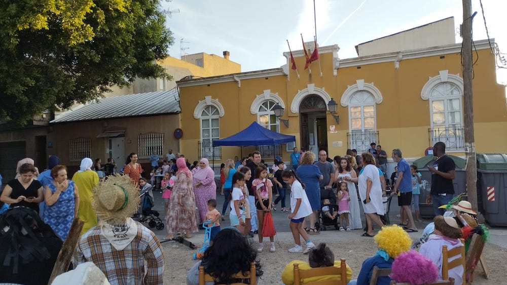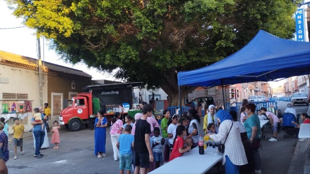 La actividad comenzó a las siete de la tarde con ludoteca dibujos y juegos con presencia de la popular camioneta de 'El remolino' de la Universidad Popular, siendo los chavales los protagonistas de esta primera parte, que culminó con merienda y chocolatada. Después, cena compartida en la que vecinos de diferentes etnias trajeron comidas y bebidas para compartir, siendo algunos de los productos típicos de sus tierras natales.