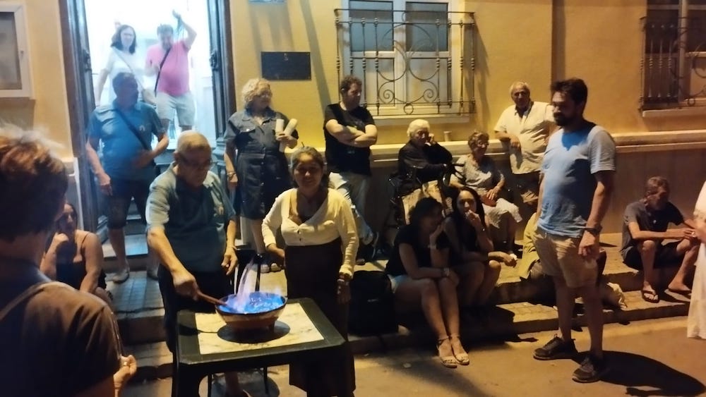 El siguiente turno fue para la sardinada y de la queimada ofrecida por la asociación de vecinos, continuando con música y bailes.