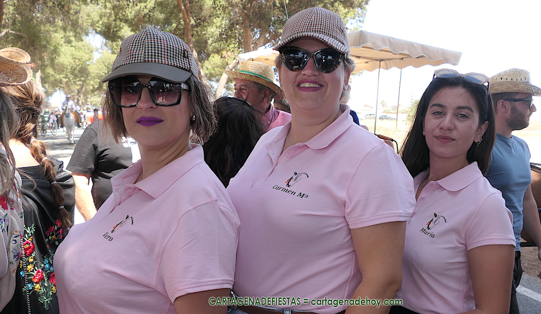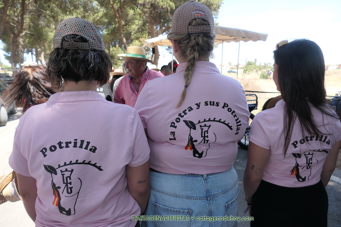 Las aljorreñas Carmen, María, Verónica y María forman el cuarteto 'La potra y las potrillas', surgida este año y que se reúnen para las romerías. En las fotos se las observa en la jornada caballista de las fiestas de El Albujón.