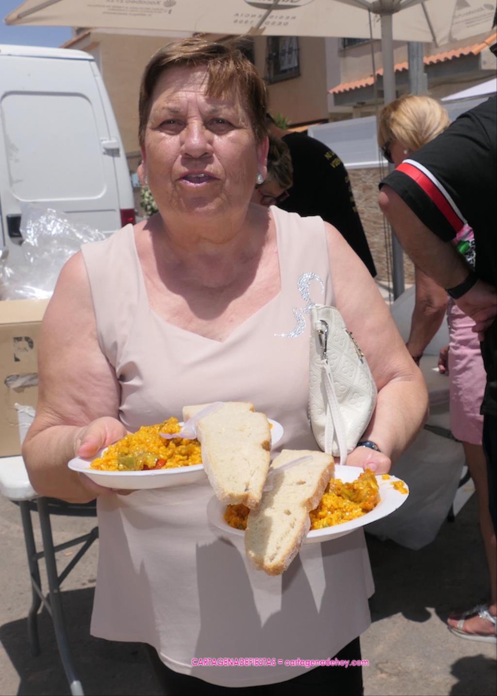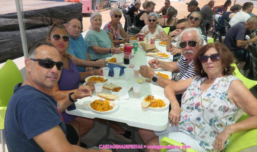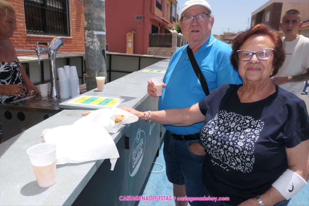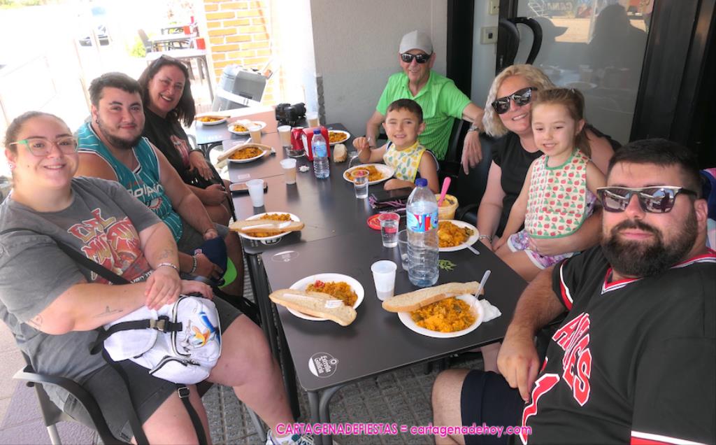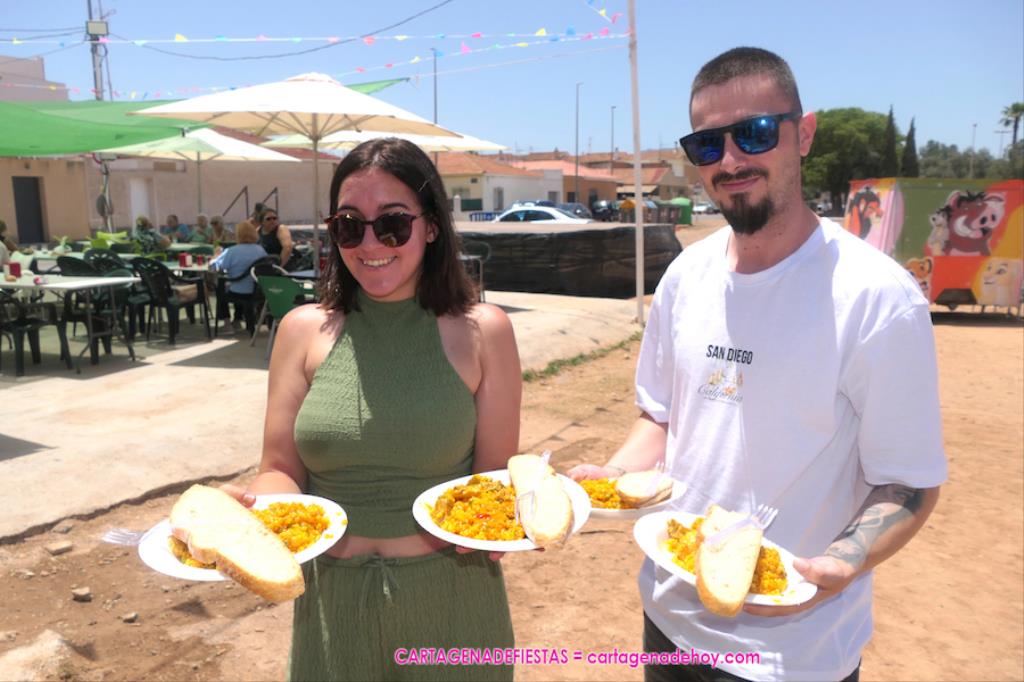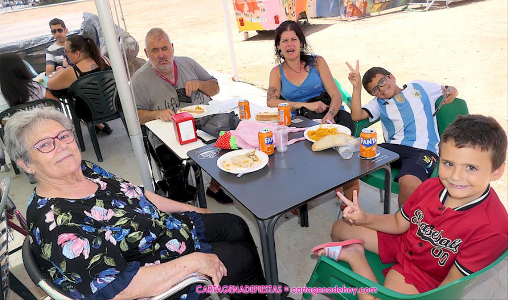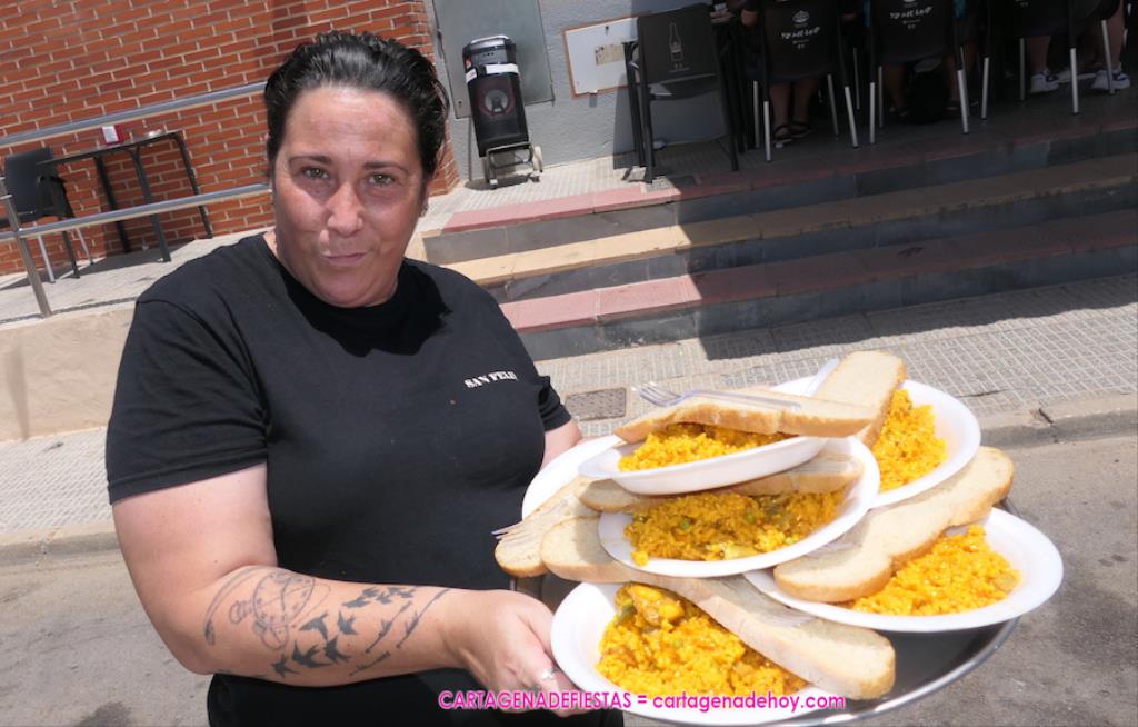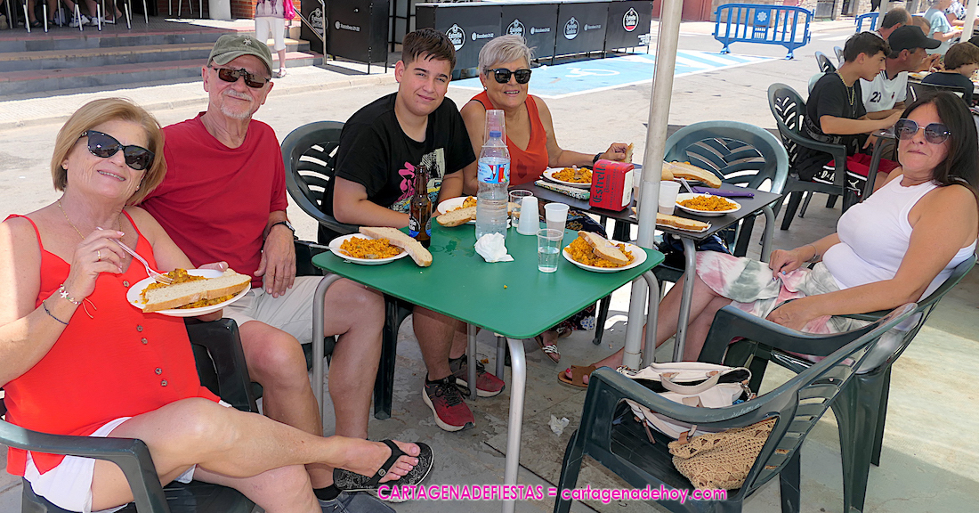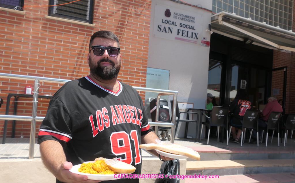 Después llegó la jornada del epílogo, que empezó a las diez con una chocolatada con bollos en la fachada del local social, frente a la que se ha ubicado estos días el recinto festero. Fue un buen punto de arranque gastronómico, pues después vinieron el pan con sobrasada y un sabroso y meloso arroz elaborado por Santiago con pollo, costillejas, pimientos y alcaciles, que fue el epicentro de una gran comida de hermandad, regada con cañas de cerveza que brotaban sin coste para los asistentes.