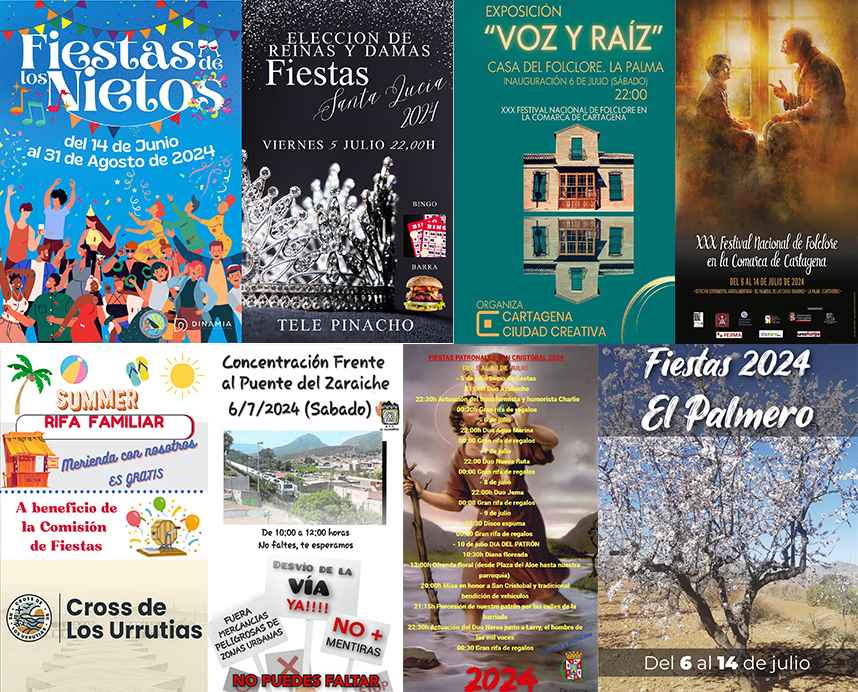 Comienza el 'Festival nacional de folclore' de La Palma, se disputa el primer 'Cross de Los Urrutias' y hay fiestas en Los Nietos, San Cristóbal, El Palmero, Los Puertos y Galifa además de la elección de la corte de honor en Santa Lucía, bingo profiestas en Los Dolores, Círculo del silencio, gala contra el cáncer, protesta en Alumbres, etc.