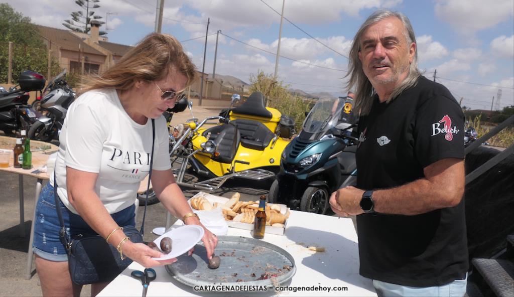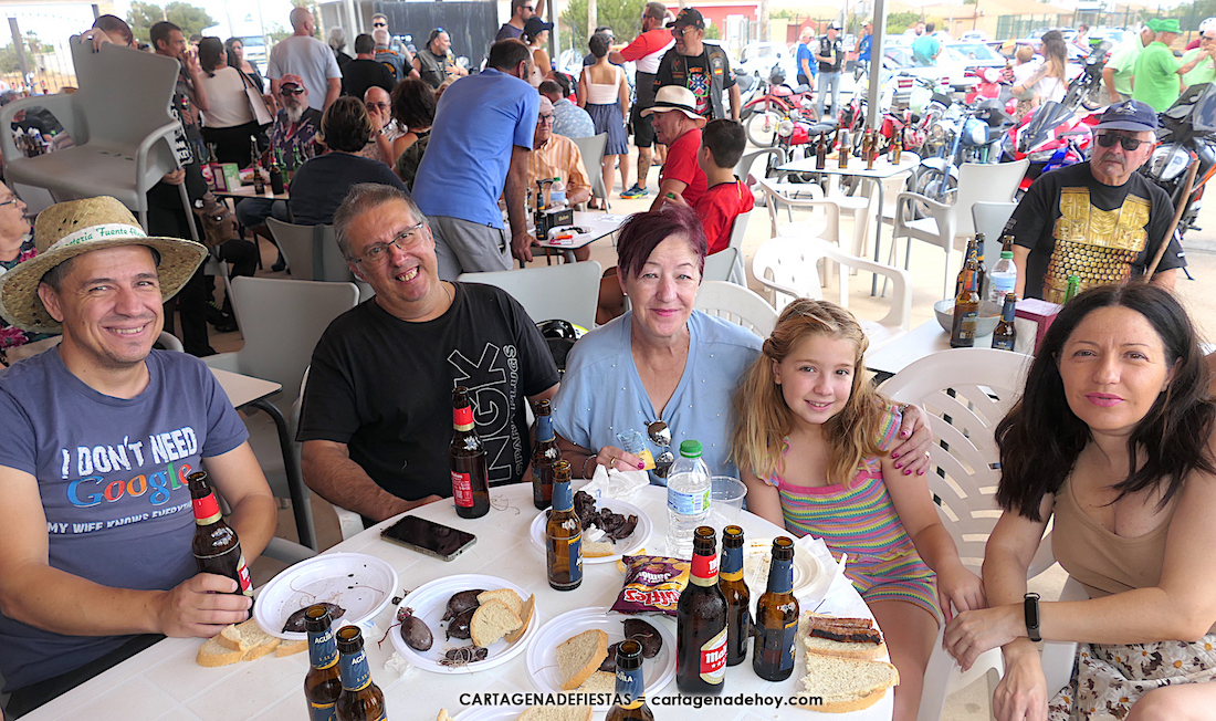 El local social de El Palmero fue el epicentro de una animada matinal en la que confluyeron propietarios y clubes de coches clásicos con grupos moteros, siendo numerosas las tertulias que se originaron, las cuales estuvieron aderezadas por las morcillas que se ofrecían de forma gratuita y de otros productos y bebidas de la cantina del centro.