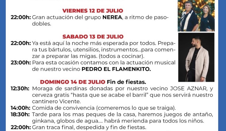 Las fiestas continúan en las tardes de martes miércoles y jueves de esta semana con campeonatos de dominó, parchís, futbolín, etc. Por las noches habrá música de ‘dj’. El epicentro festero es la cantina del local social.