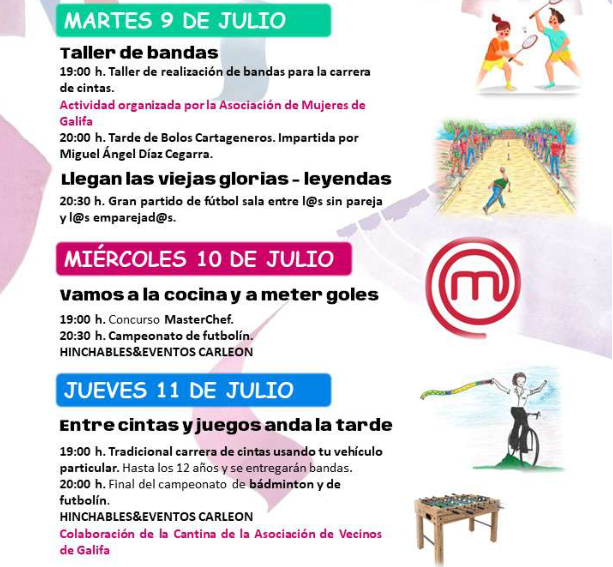 Tras acabar, todos se dirigían al polideportivo galifero donde a base de manguerazos recuperaban sus 'identidades'. Las fiestas siguen hasta el 16 de julio, siendo las propuestas de los días más inmediatos las siguientes: