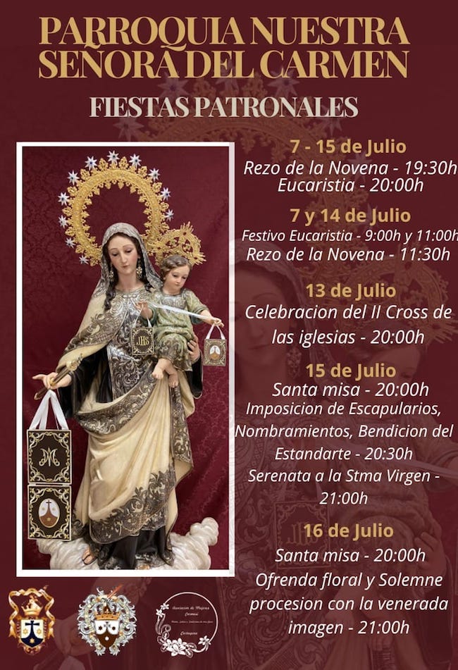 Las fiestas patronales en honor a Nuestra Señora del Carmen tienen como epicentro la iglesia de la calle del Carmen de la ciudad de Cartagena. Su programa también incluye el 'Cross de las iglesias' del sábado 13.