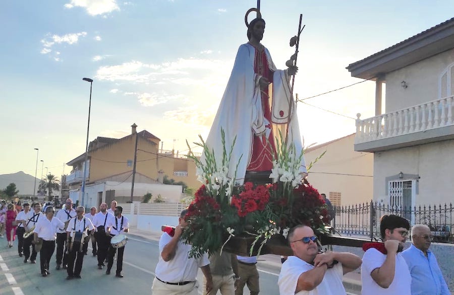La imagen de Santiago Apóstol protagonizó la procesión por la calle Mayor del pueblo acompañada por vecinos y por la banda musical 'Quillo'-Agrupación Musical 1990. Después se celebró una misa en la plaza de la Iglesia, con el coro rociero 'Puertos de Santa Bárbara'.