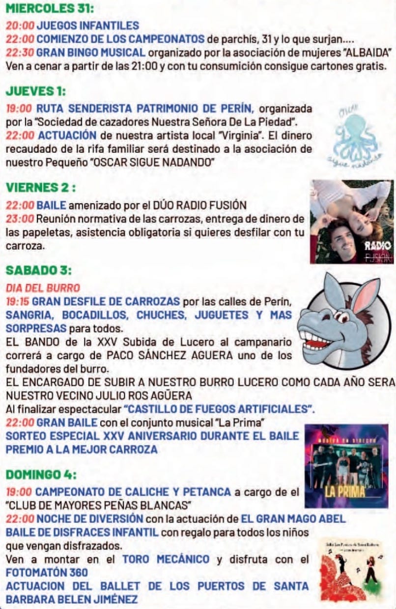 Las fiestas patronales de Perín siguen su buena marcha, que entre otras actividades, celebró el domingo la degustación popular de un arroz popular en el campo de fútbol en lugar de la plaza de la Iglesia, como figuraba en el programa. Hay que matizar que este año son dos los recintos que albergan las fiestas.