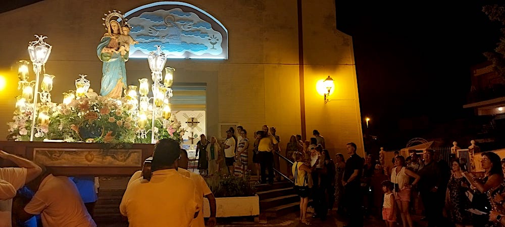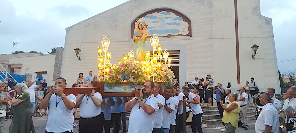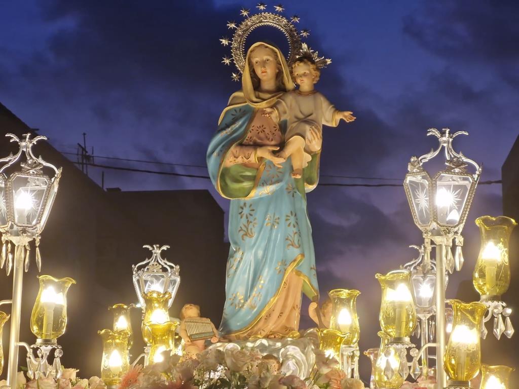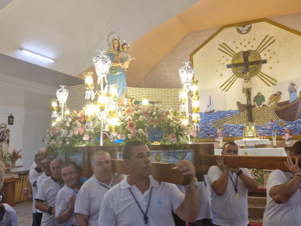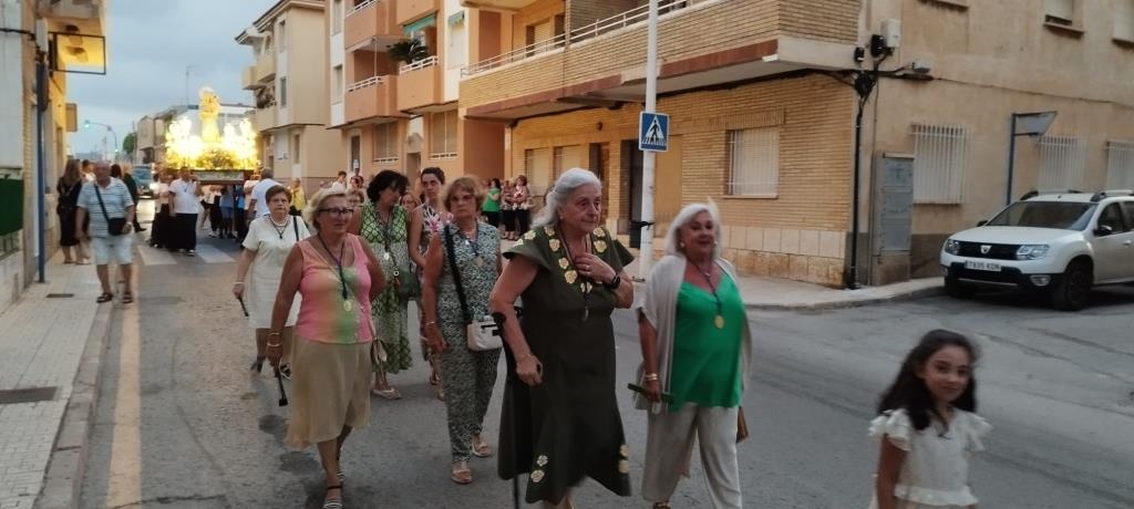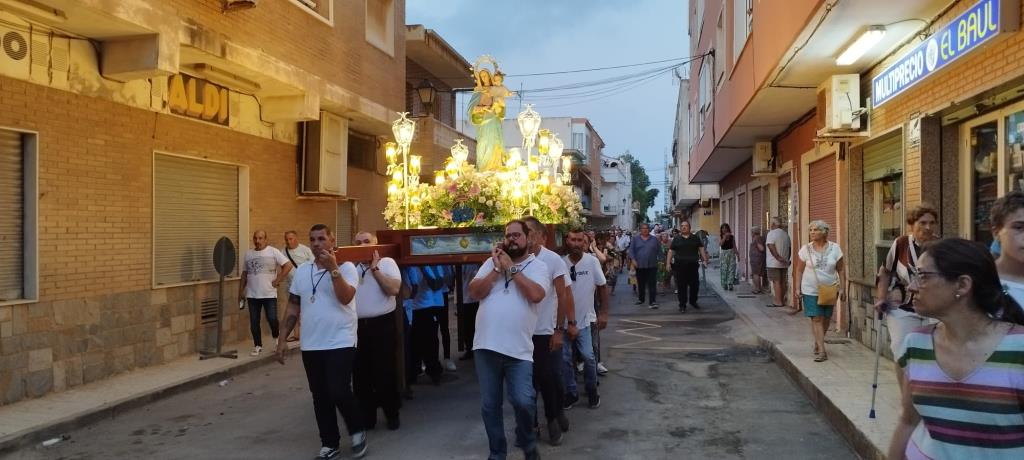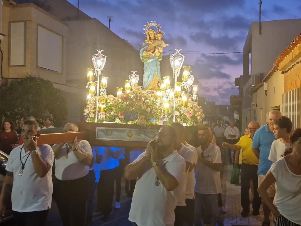 Los Nietos saca tres veces en verano a la Virgen en procesión. Primero fue la Virgen del Carmen y el próximo día 15 lo hará la Virgen de la Asunción, ambas con procesiones marítimas incluidas. Entremedio toma el protagonismo la patrona, Nuestra Señora de los Ángeles, cuya hermandad se constituyó en 1999 y que sigue teniendo como 'alma mater' a Conchi Rodríguez Ramos.