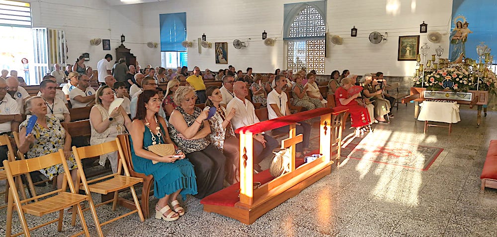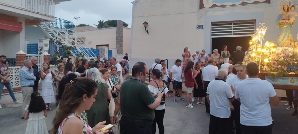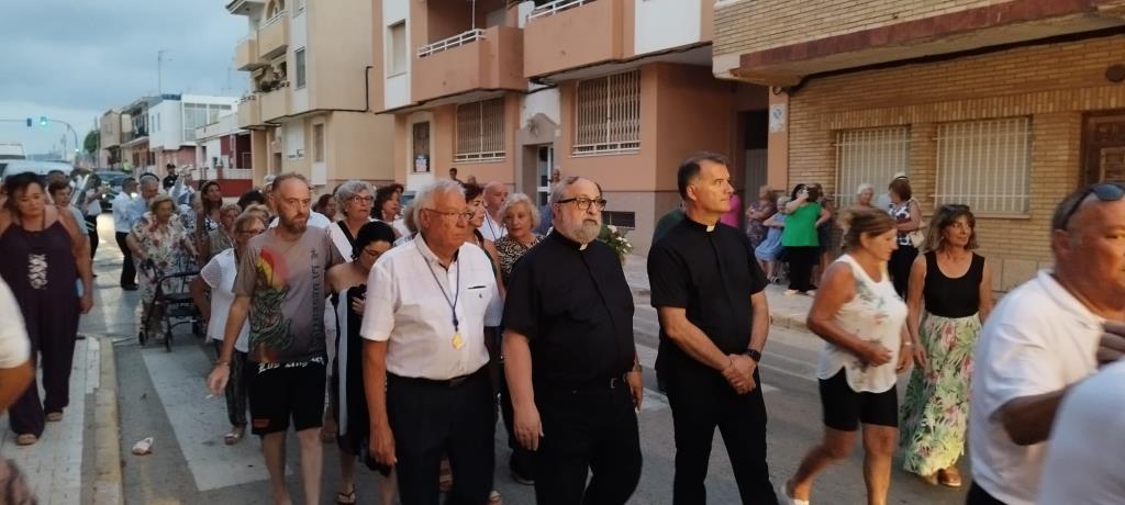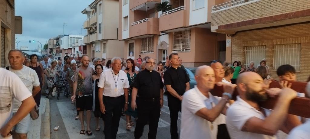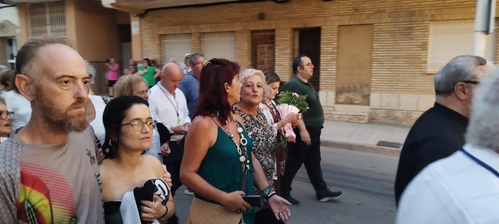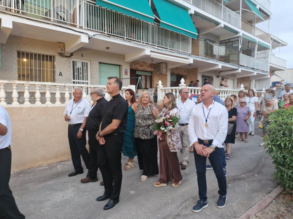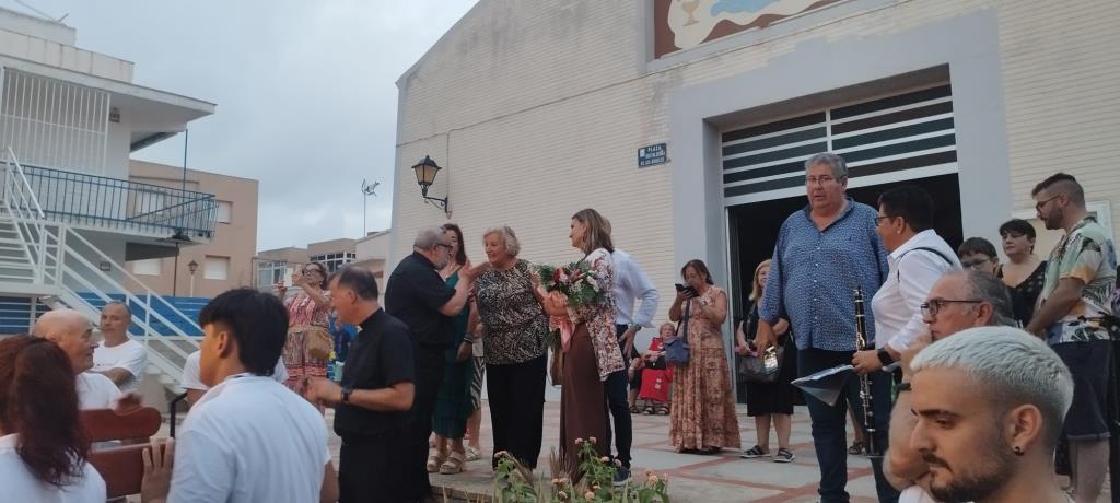 El primer capítulo de la tarde de esta celebración fue la eucaristía, que fue oficiada por el vicario general del Campo de Cartagena contó con la presencia de Conchi Rodríguez y de la presidenta de la asociación de vecinos, Nani Vergara, además de la hermana mayor de la Cofradía del Resucitado de la ciudad de Cartagena, Marien García Boj, el concejal Diego Lorente , del equipo de gobierno municipal PP-VOX; de la senadora socialista María Dolores Flores; y, entre otros, María José Soler (MC), vinculada a la hermandad desde hace tiempo.