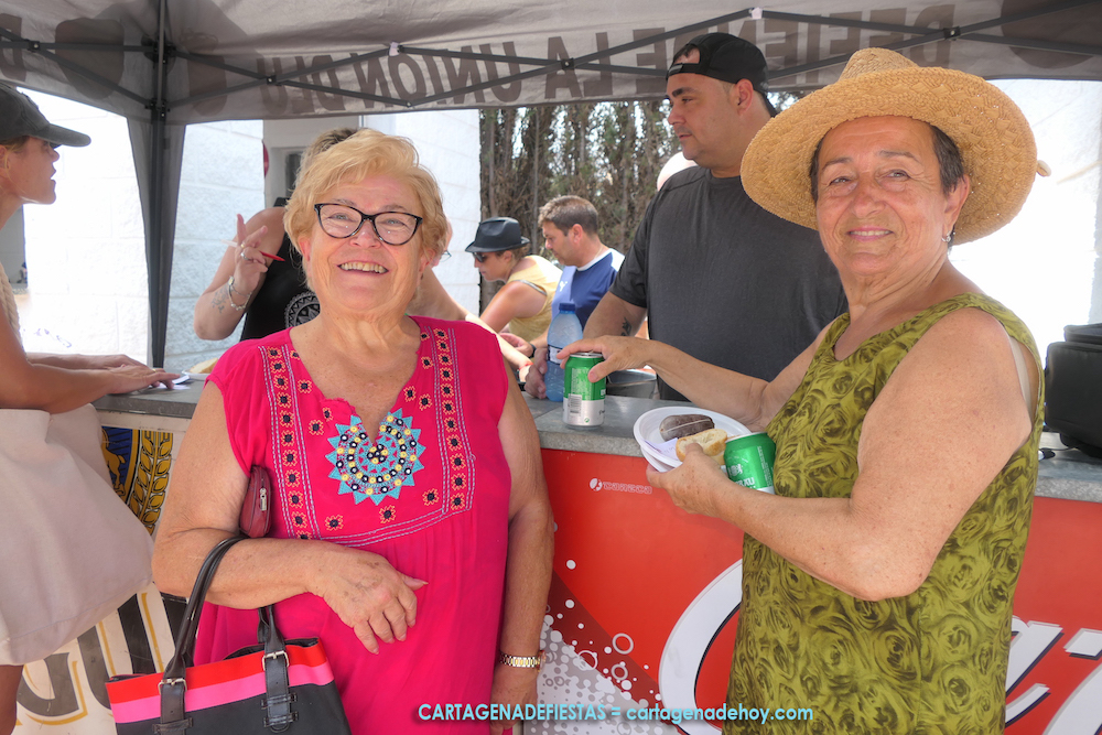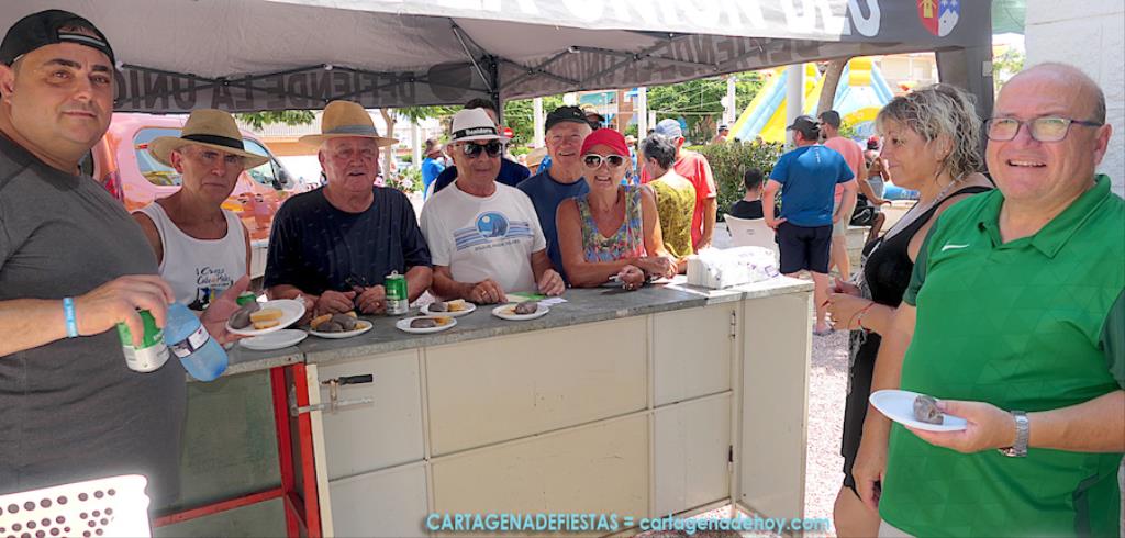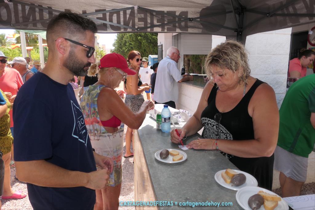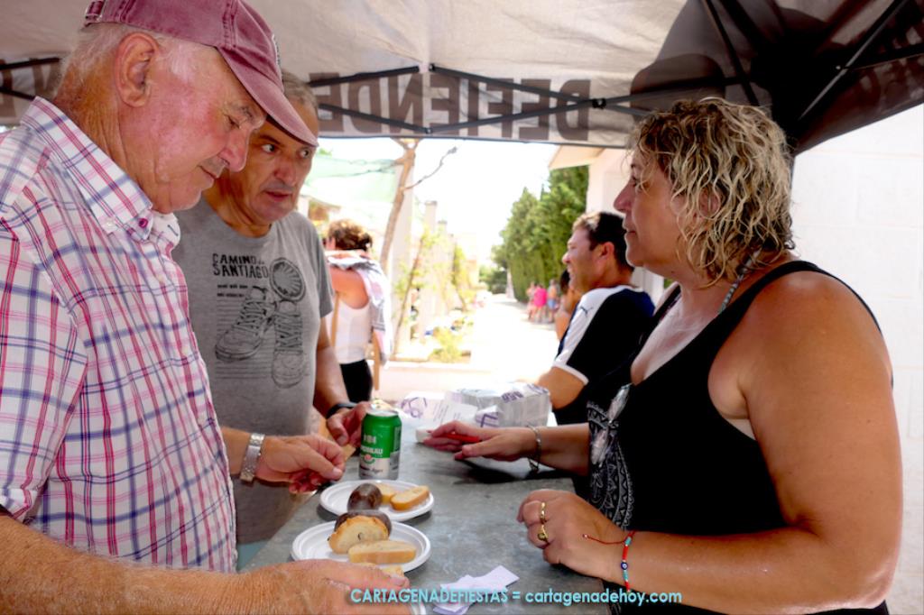 La asociación de vecinos, dentro de unas fiestas patronales que se han recuperado este año, distribuyó 53 kilos de morcillas hervidas, 700 litros de cerveza y 150 de tinto de verano de forma gratuita entre sus asociados. La mañana se completó con una animada fiesta del agua.