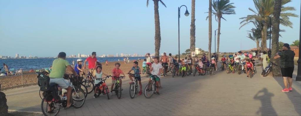 La asociación de vecinos organizó una marcha cicloturista junto al Mar Menor por el pueblo y por Mar de Cristal que reunió a un centenar de participantes de muy variadas edades.