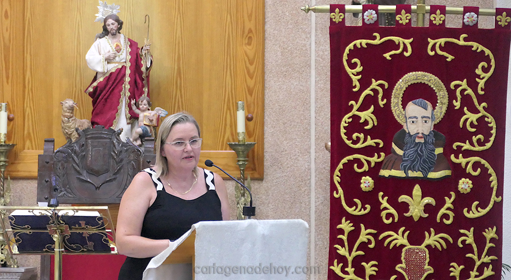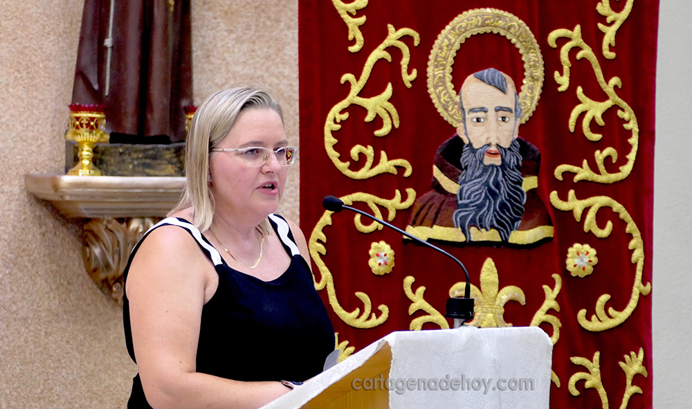 Quien ha sido la primera mujer en la historia en ocupar el cargo de presidenta de la Junta de Cofradías de la Semana Santa de Cartagena, ofreció un ameno pregón ante los numerosos asistentes a la parroquia de la barriada de San Ginés.