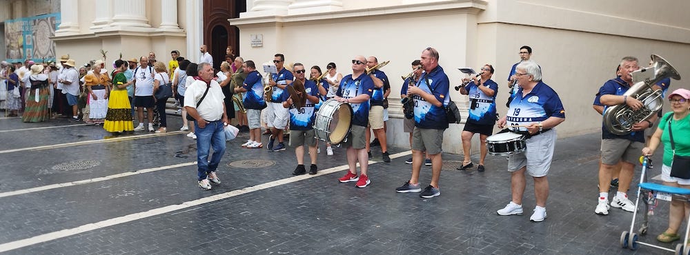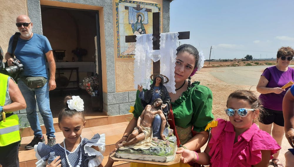En La Aparecida ha tenido lugar la ofrenda floral a Nuestra Señora de los Dolores y un sabroso avituallamiento preparado por los vecinos, dándose un segundo capítulo en la pequeña ermita ubicada en la redonda de la 'Vía Ylada', a donde ha llegado el santo acompañado por la pequeña talla de la patrona aparecidiense.