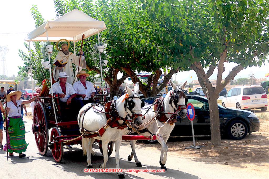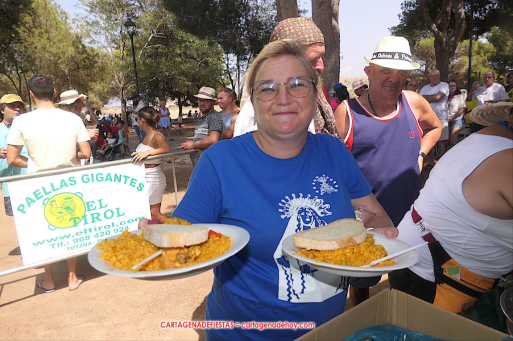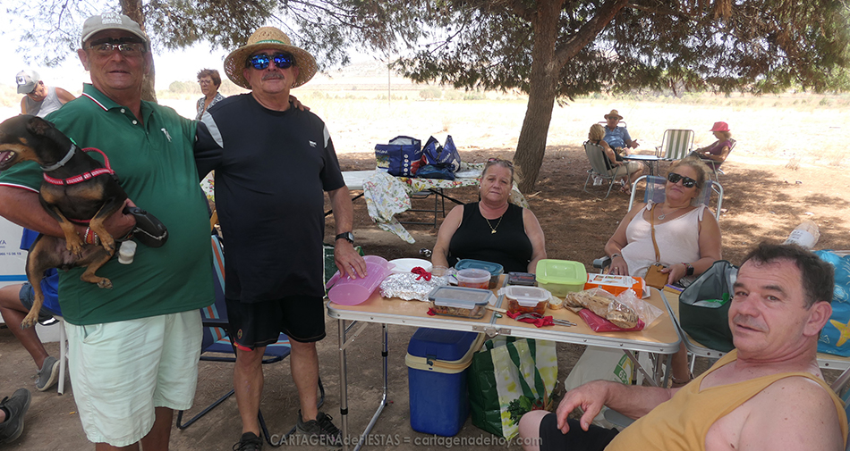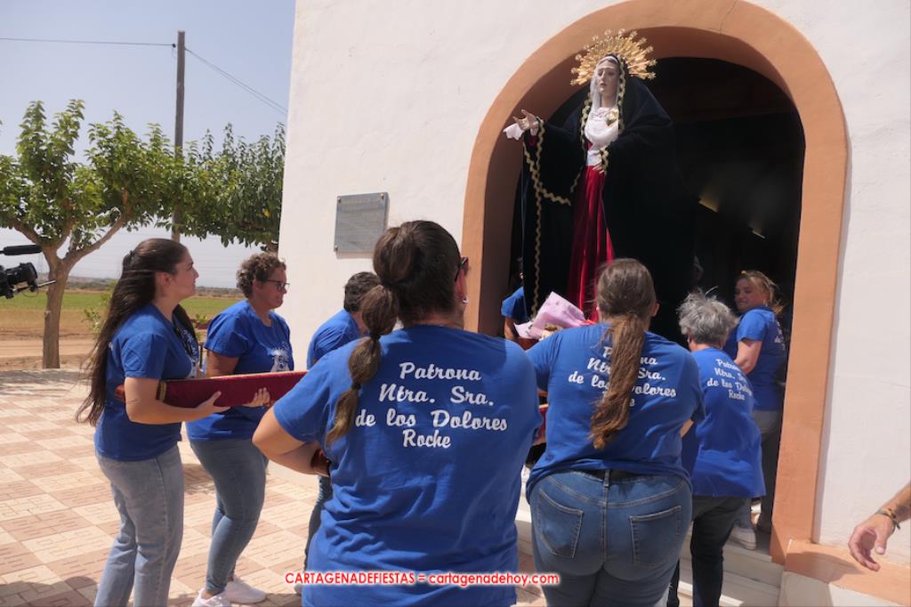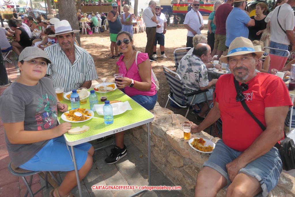 Karma21 ofrece escenas de la llegada de los romeros a la ermita unionense de Roche, donde el santo patrono cartagenero fue recibido por la Virgen de los Dolores y en cuya pinada tuvo lugar una gran convivencia en torno a un gigantesco arroz que culminó con cafe de puchero, desencadenándose durante ese alto varias 'batallas de agua'.