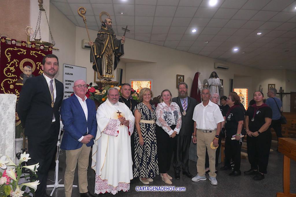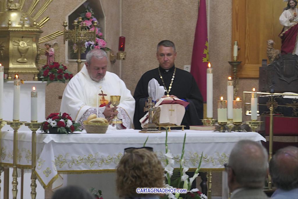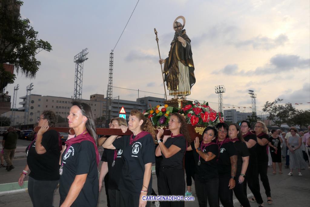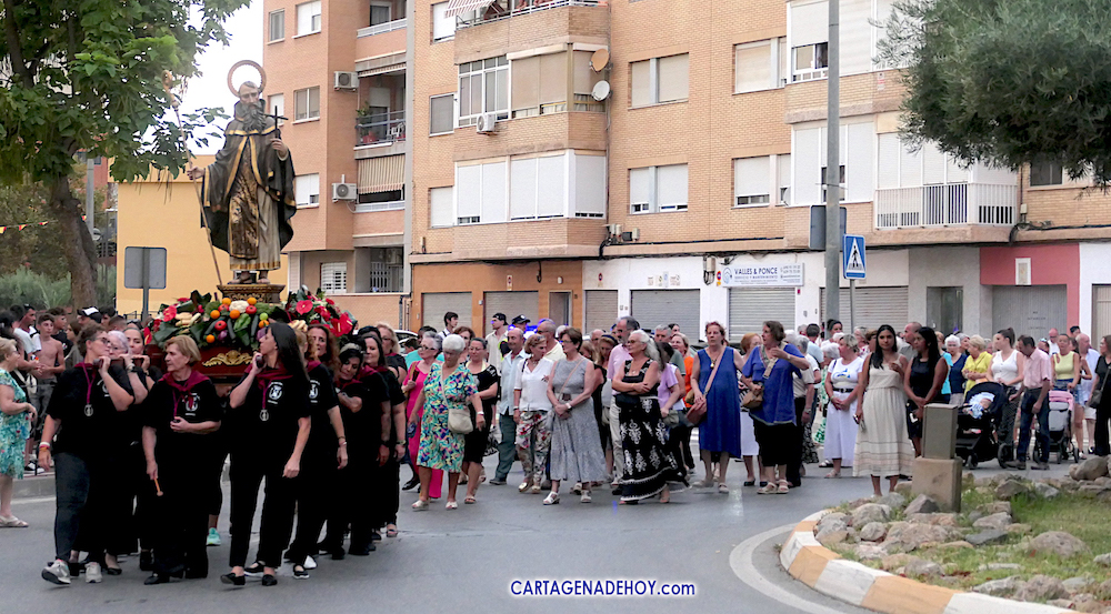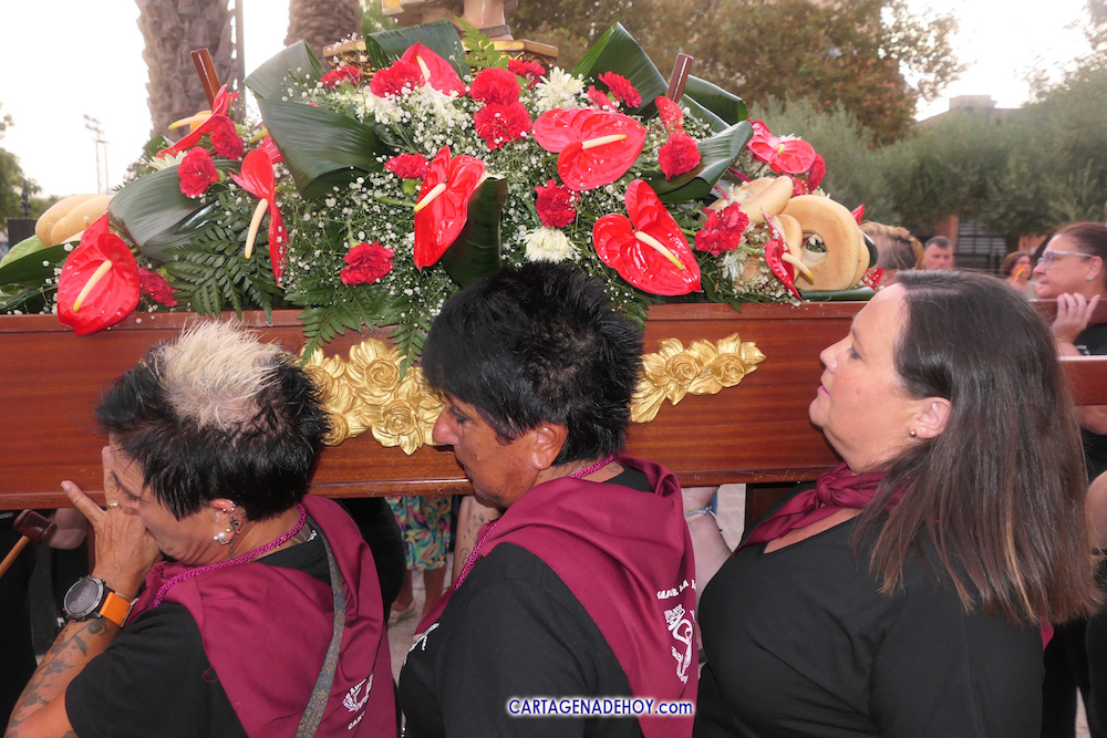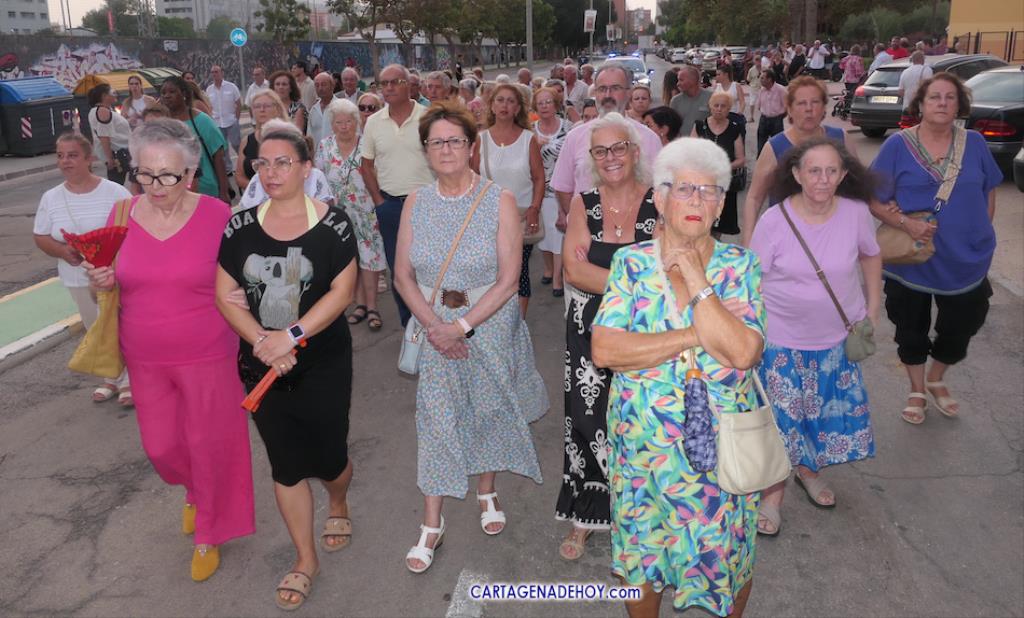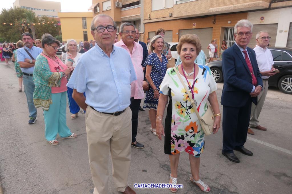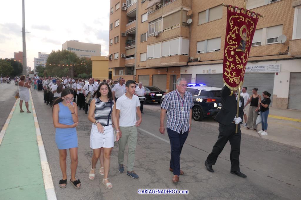 La otra novedad ha estado en la presencia de la Agrupación Musical 'Cartagena 1990', que ha recibido a la imagen haciendo sonar el himno de España y que después ha abierto la marcha por las calles de la barriada, por detrás del estandarte.