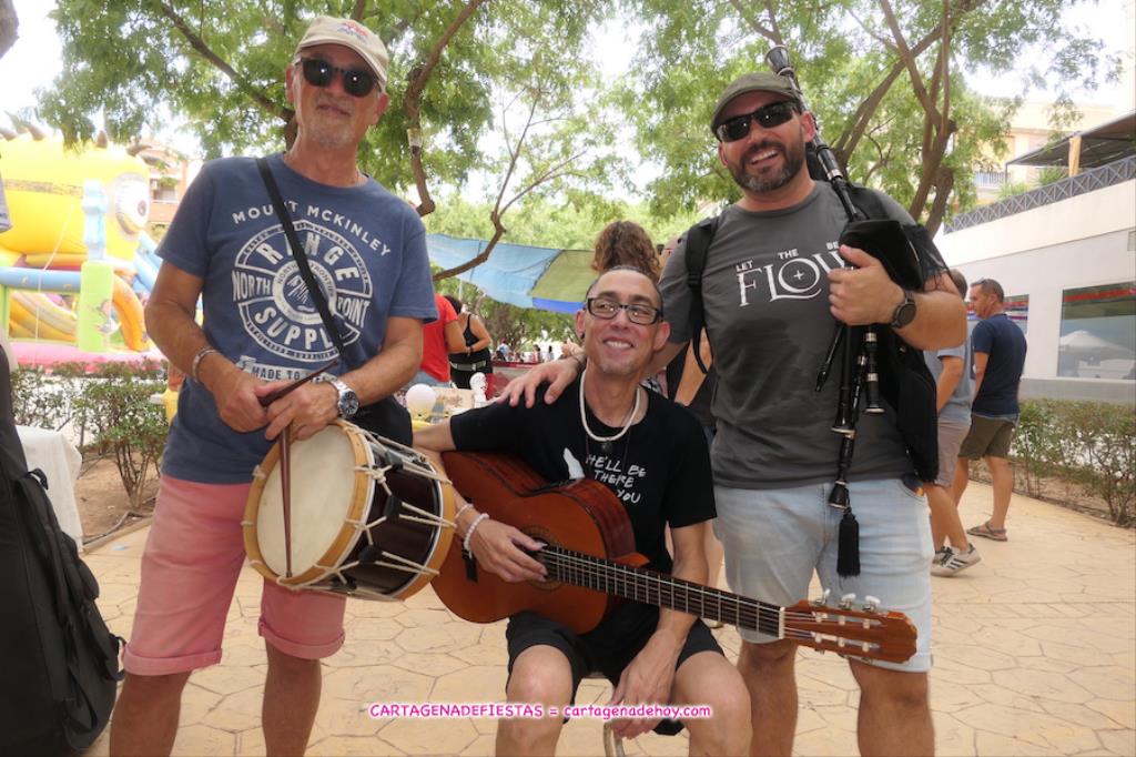 Un grupo de vecinos de la barriada animó con gaita, guitarra y tambor la primera jornada de la novena edición del encuentro de artesanos del Polígono Santa Ana.