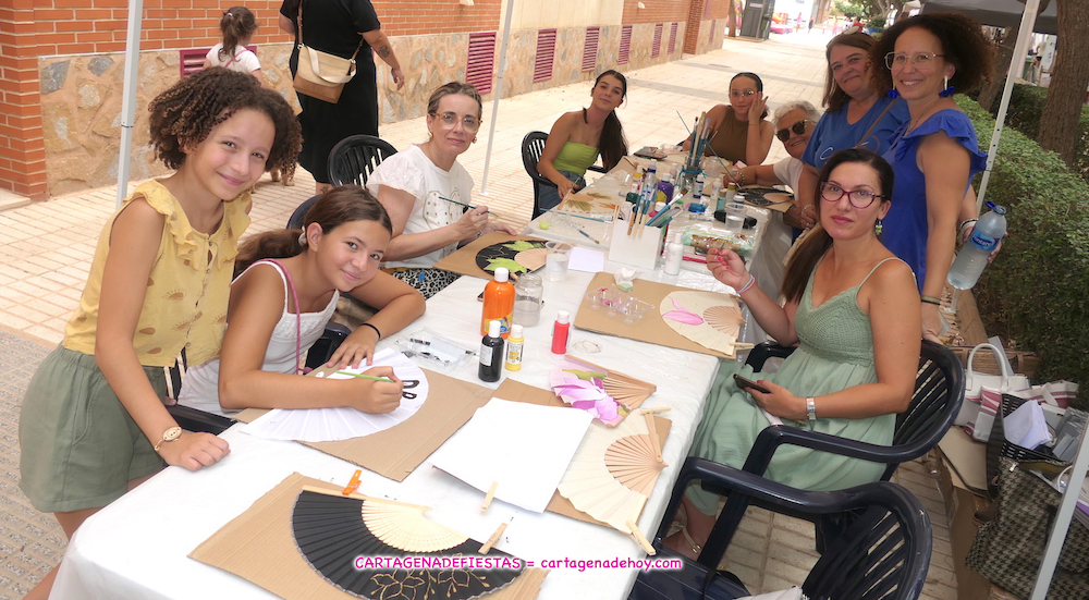 La asociación de mujeres artesanas del Polígono Santa Ana puso en marcha ayer, durante la celebración del ‘IX Encuentro de artesanos’ de las fiestas populares, un taller para adornar estos objetos de mano con técnicas de pintura en tela.