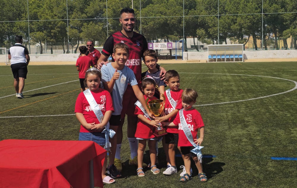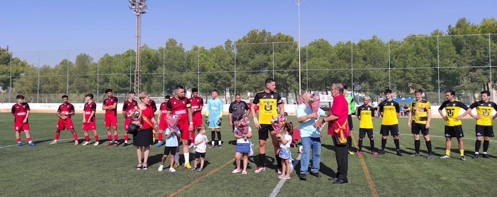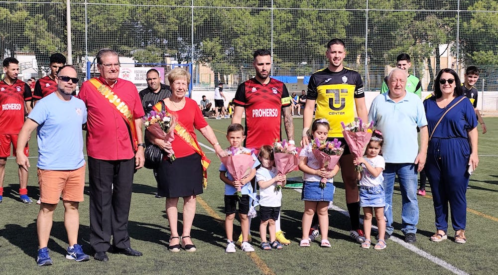 El trofeo de las Fiestas de Los Dolores ha sido conquistado por el CD Dolorense tras empatar con el EF Tiñosa (1-1) y vencer en una maratoniana tanda de penaltis por 14-13. En la foto, el saque de honor de la reina de los mayores, Maruja Pérez.