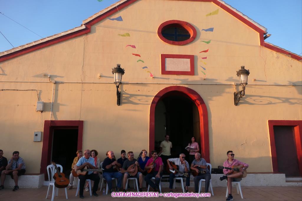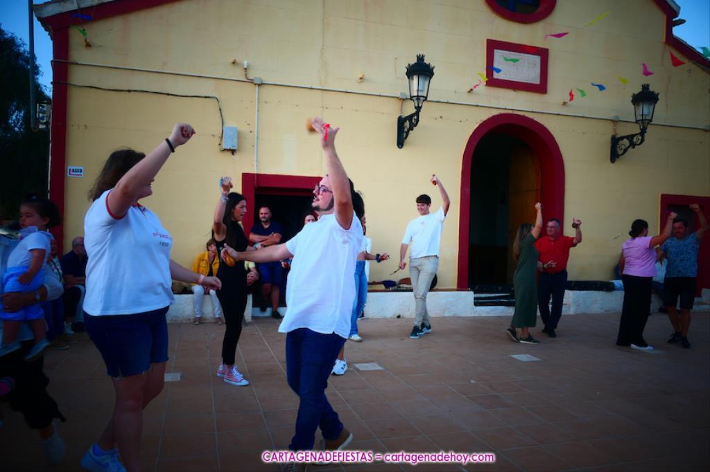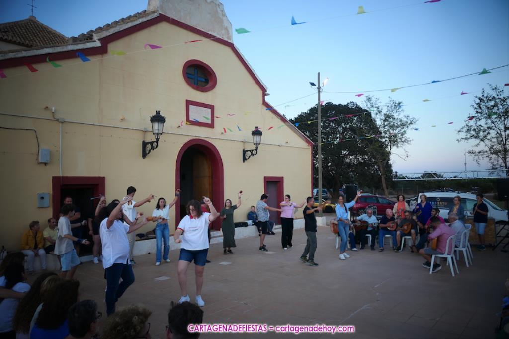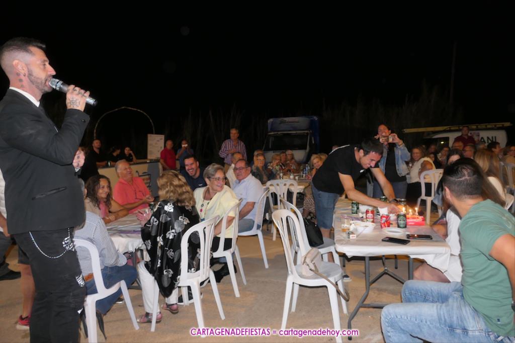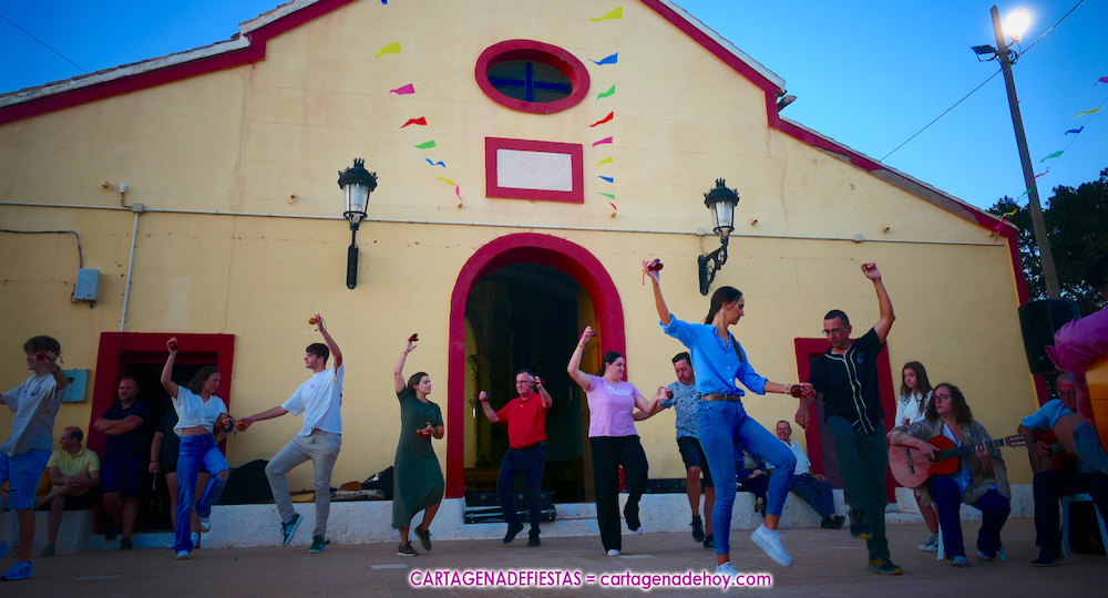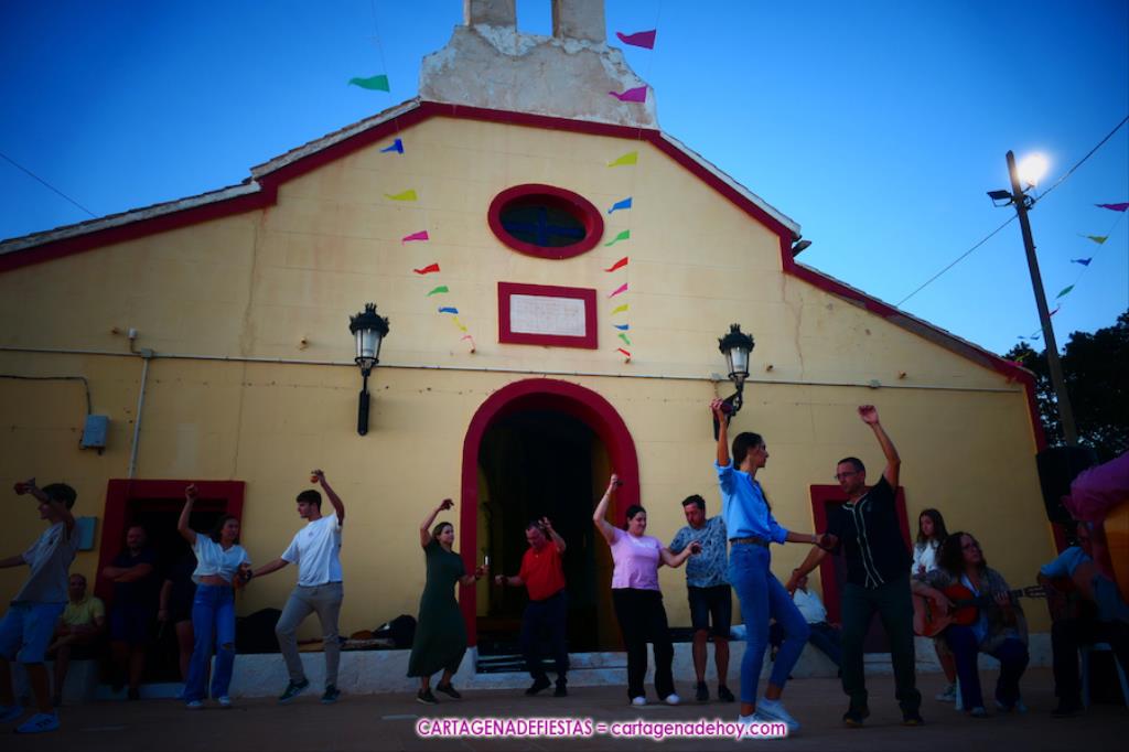 Después, el grupo folclórico 'Ciudad de Cartagena' ofreció sus bailes con la ermita de fondo en unos momentos en los que, mientras caía el sol, un viento fresco iba a más. Sin embargo, poco después paró y quedó una noche ideal que culminó con rifa familiar y la actuación en directo del dúo 'Nuevo Top Music', sin olvidar que también hubo canto colectivo de 'cumpleaños feliz' a una de las asistentes.