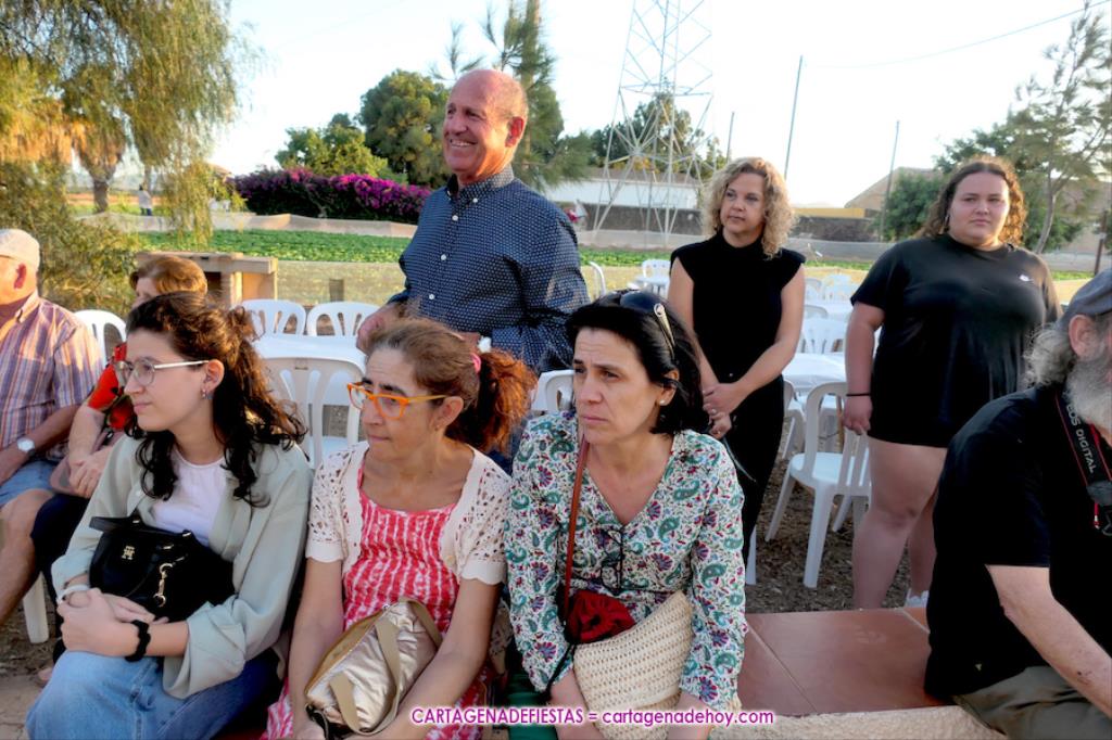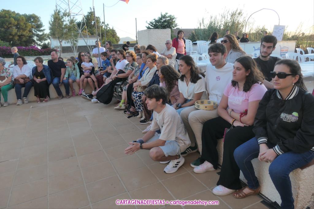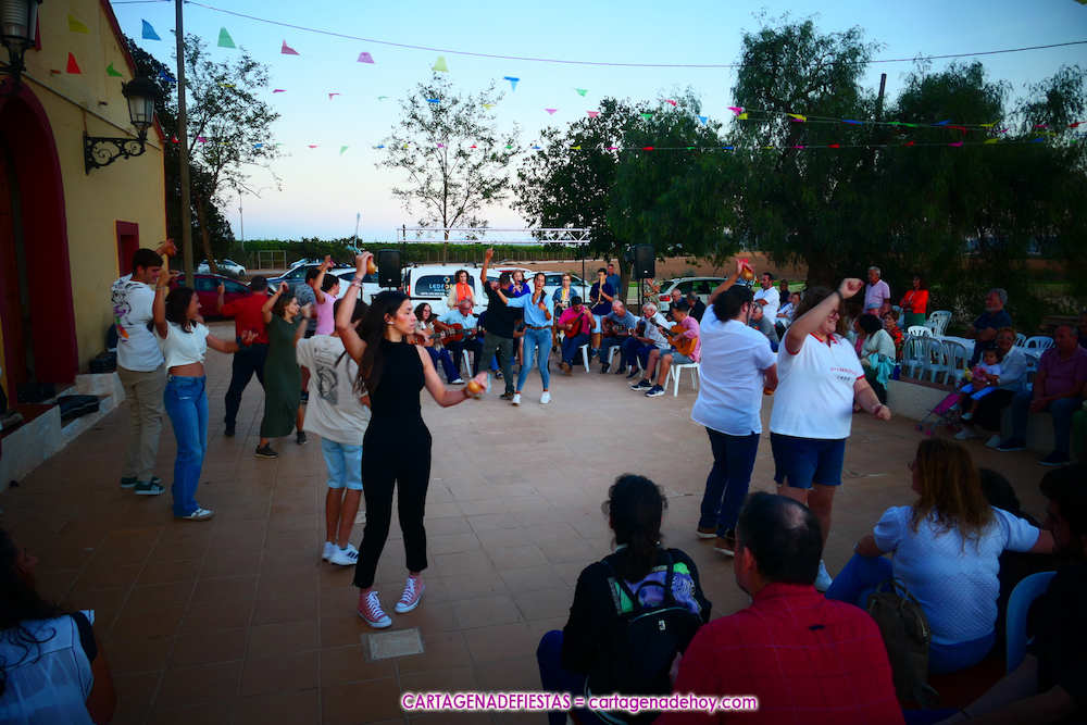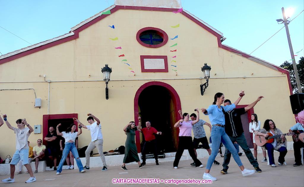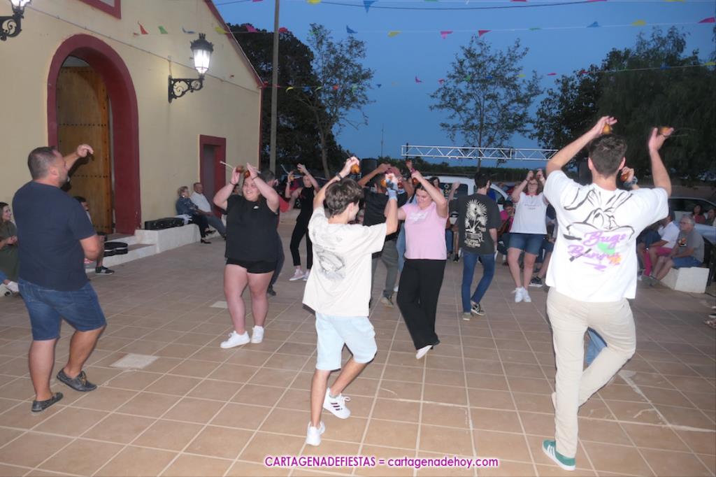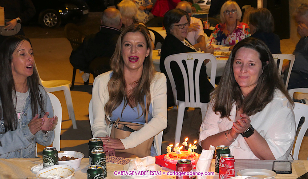 Después, el grupo folclórico 'Ciudad de Cartagena' ofreció sus bailes con la ermita de fondo en unos momentos en los que, mientras caía el sol, un viento fresco iba a más. Sin embargo, poco después paró y quedó una noche ideal que culminó con rifa familiar y la actuación en directo del dúo 'Nuevo Top Music', sin olvidar que también hubo canto colectivo de 'cumpleaños feliz' a una de las asistentes.