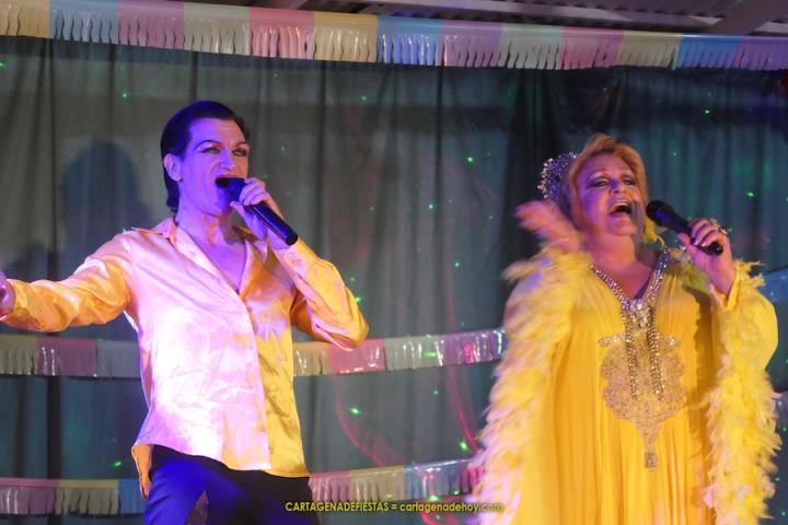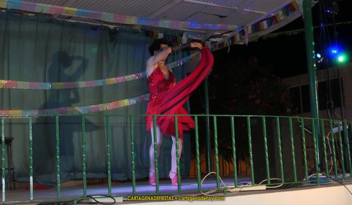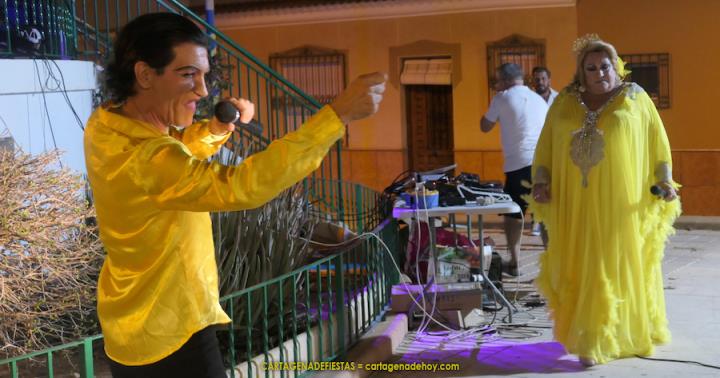 Las fiestas de la barriada de Cartagena Norte acogieron una animada y simpática noche con los transformistas Pedro Torres y Fran Sola, la bailaora Cayetana Moreno y el mago Fran. Hoy es la noche de las migas y mañana es la procesión en horario matinal.