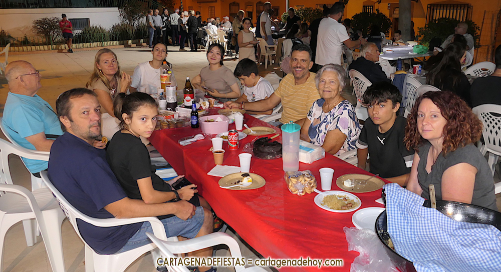 La plaza de María Auxiliadora fue anoche un gran restaurante al aire libre con variedad de propuestas gastronómicas, destacando las sartenadas del típico plato rulero del Campo de Cartagena.