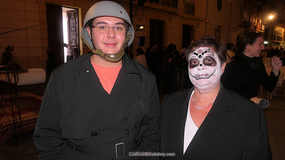 Las calles de la ciudad de Cartagenero se llenaron anoche de personas disfrazadas, entre los que estuvieron 'el combatiente militar' Máximo Pallarés y la 'Catrina' Maricarmen Martínez.