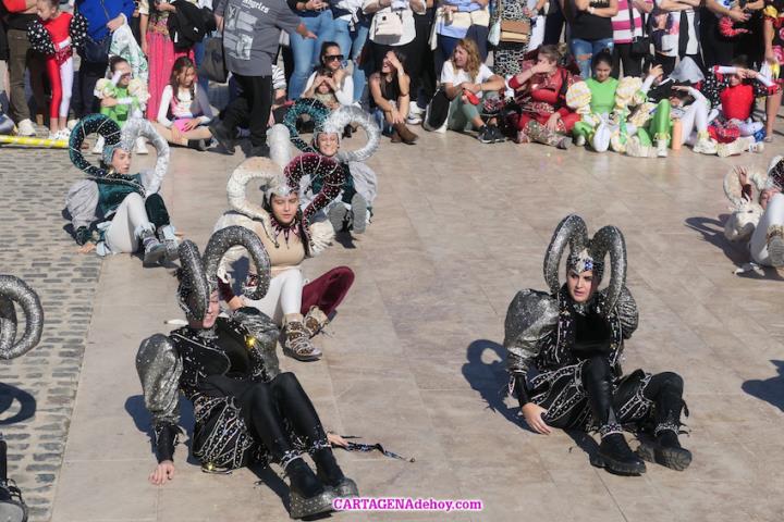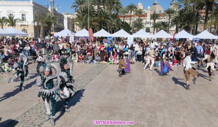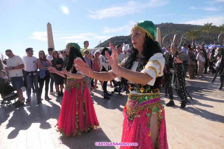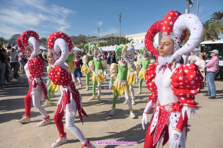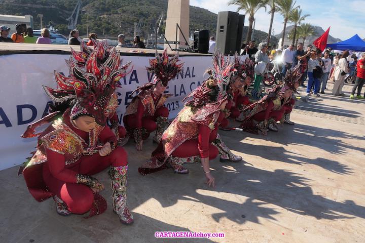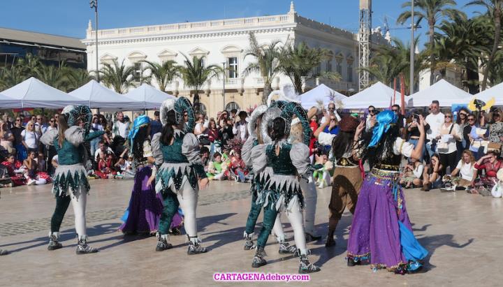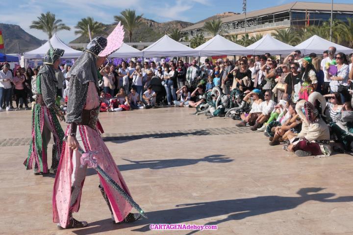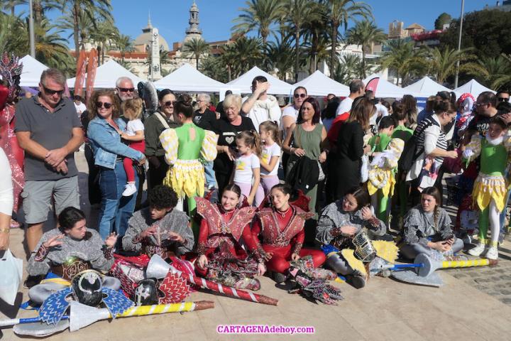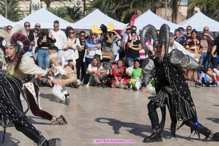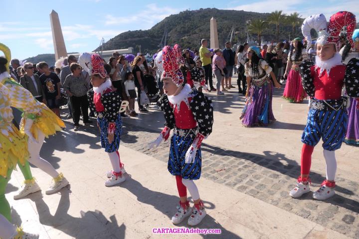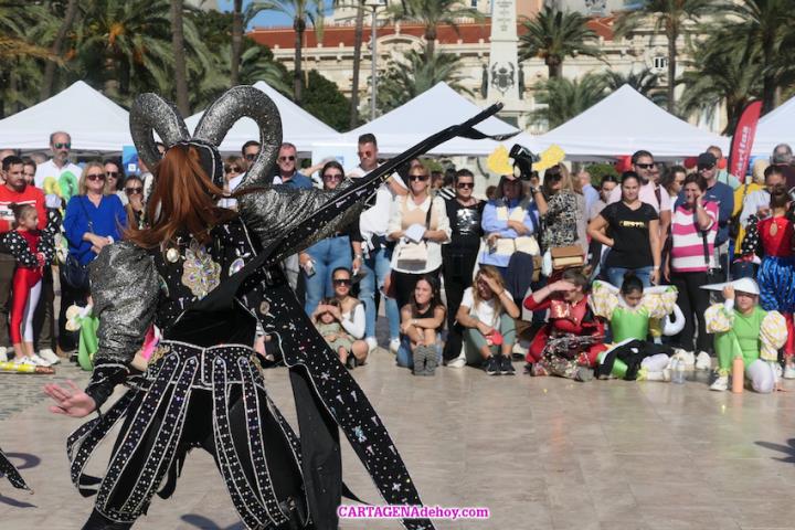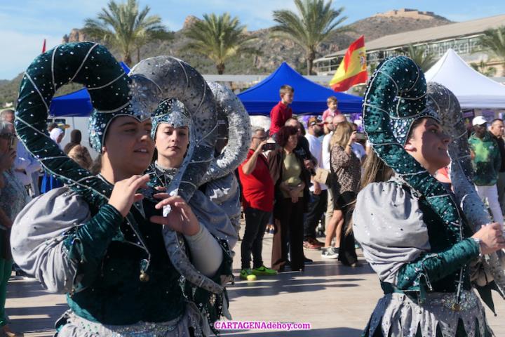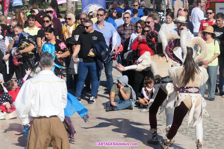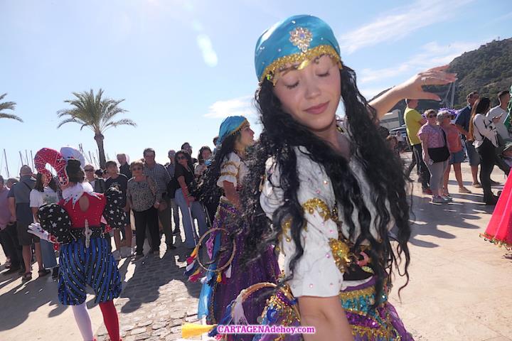 La décima edición de la 'Feria de asociaciones y colectivos' de la barriada llena de fiesta la explanada del puerto entre los estand y las actuaciones de música y bailes, la mayoría en modo carnavalero.