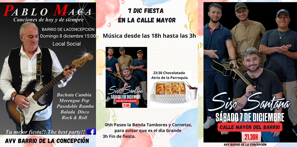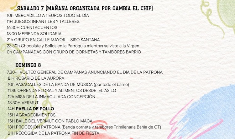 Las fiestas patronales en honor a la Inmaculada afrontan sus dos jornadas finales, las cuales van cargadas de actividades, como música en directo de Siso Santana y Pablo Maca, arroz gigante o una medianoche con chocolatada y campanadas. En la foto, en el centro, María Beteta, en la noche que ofreció el pregón de este año.