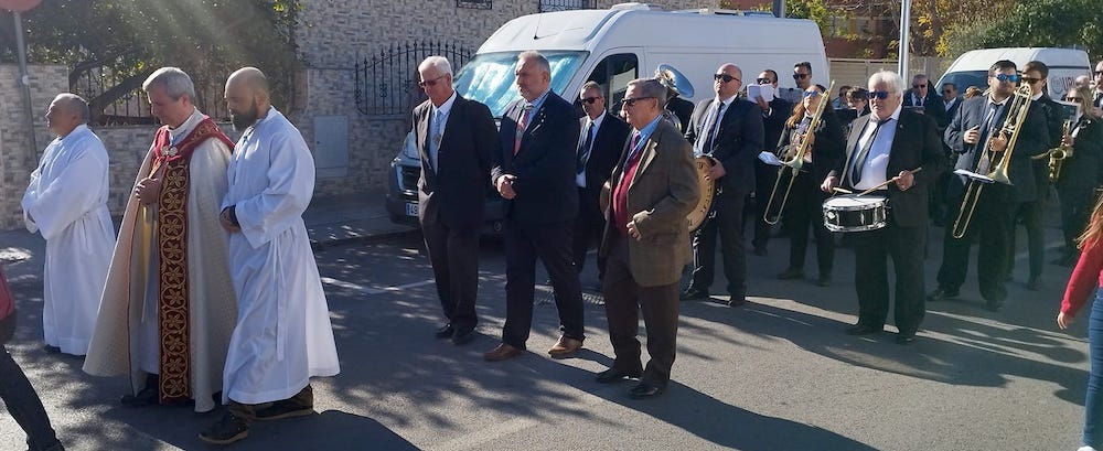 La Urbanización Mediterráneo celebró la procesión de la imagen por las calles de la barriada, siendo la Asociación Musical 'Cartagena 1990' la que puso sonido a la marcha. El edil José Ramón Llorca es el distinguido este año por la parroquia.