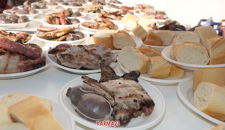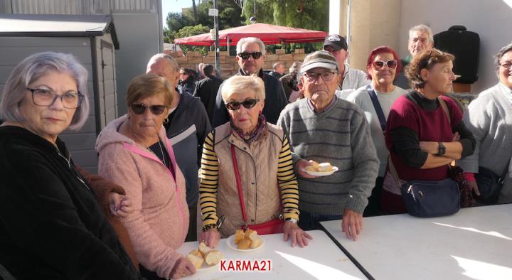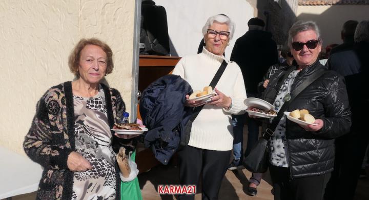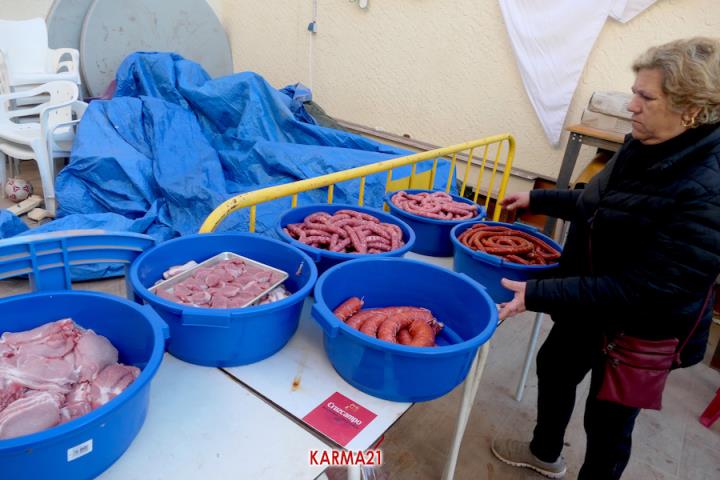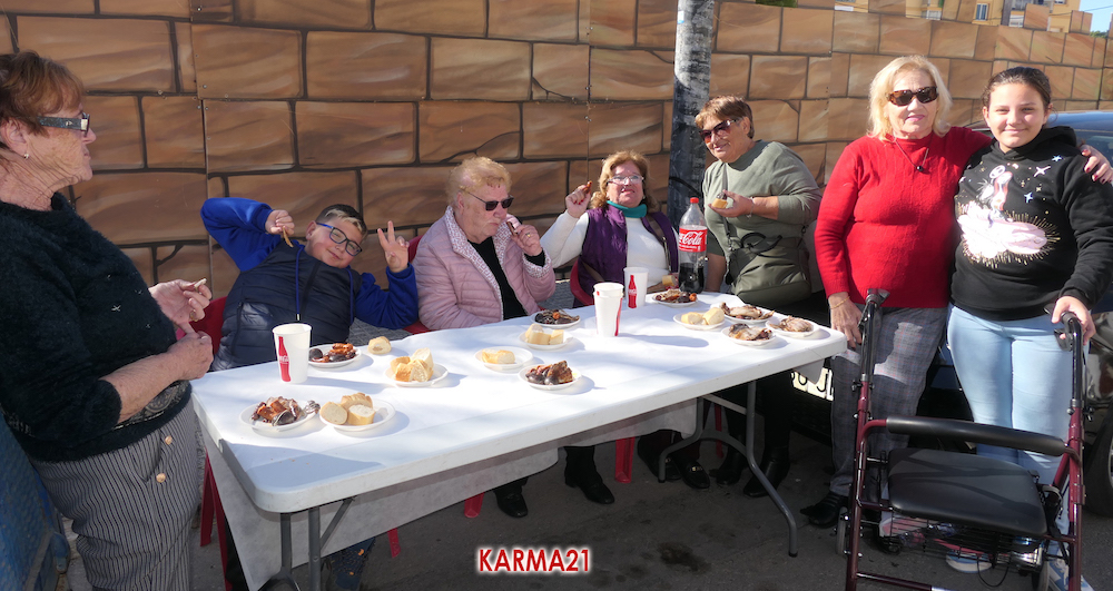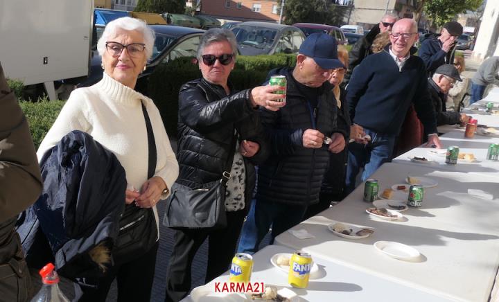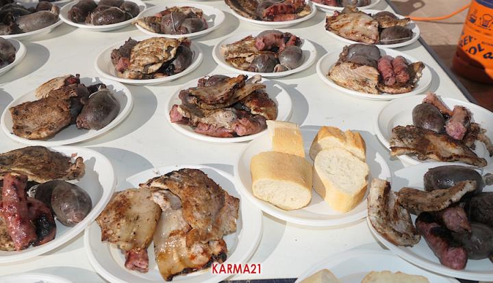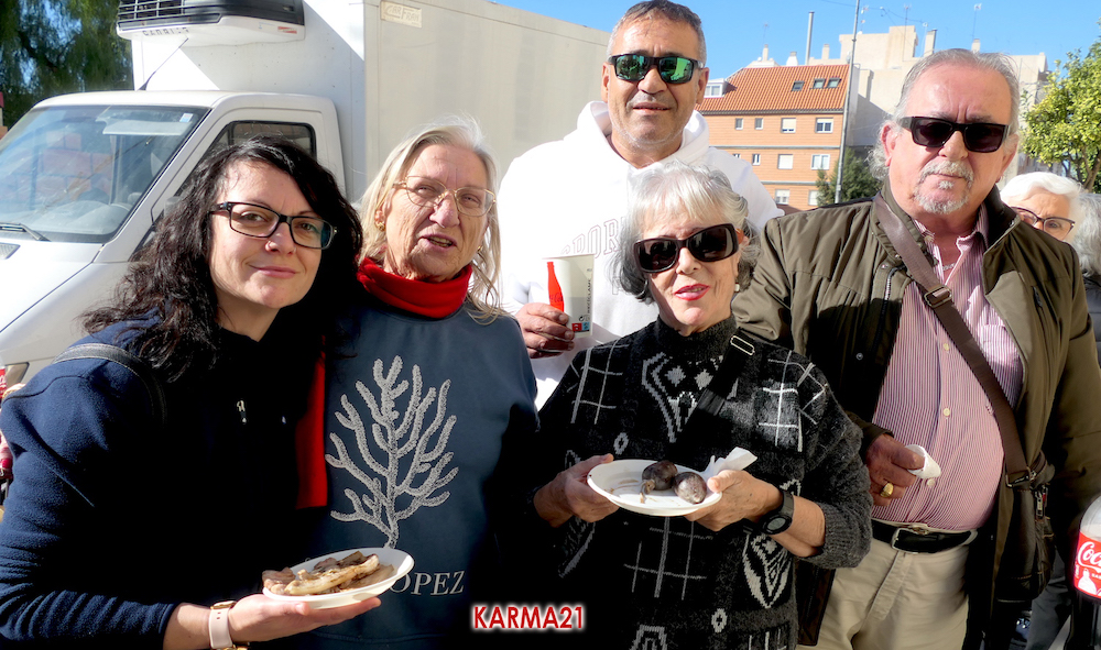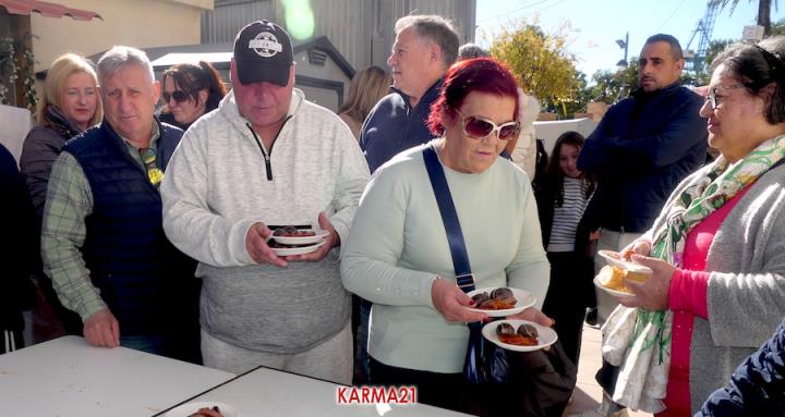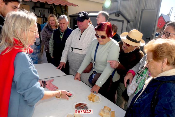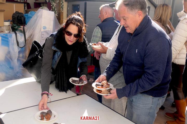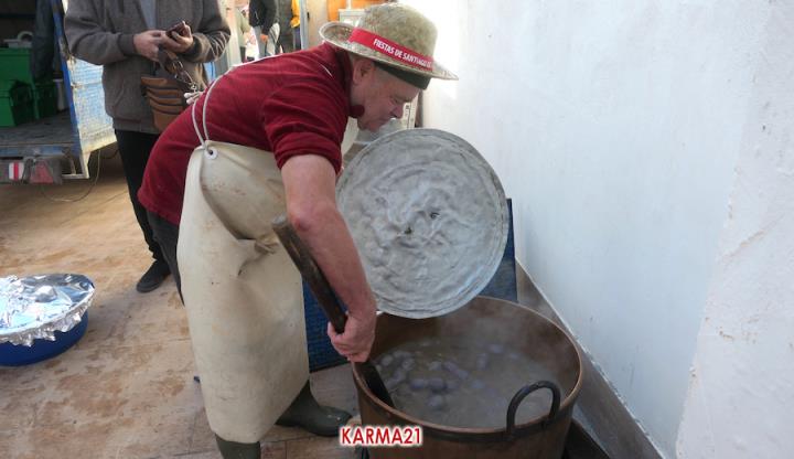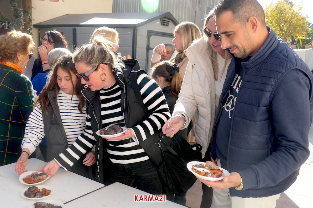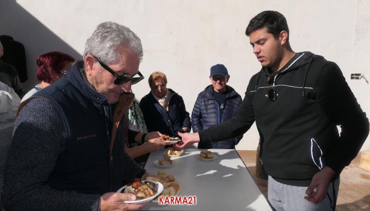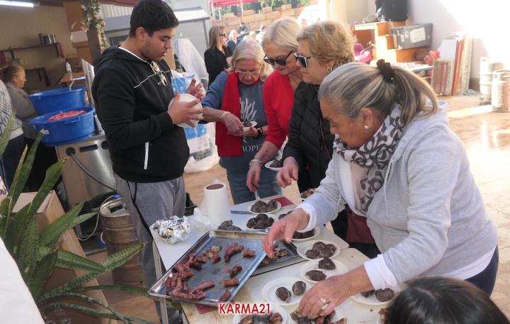 Mariano 'El Ministro', de 'Embutidos La Aparecida' y que cumple medio siglo desde que se estrenó con un marrano, estuvo acompañado por dos ayudantes para llevar a cabo desde las siete de la mañana la elaboración de morcillas, blancos, longanizas, chorizos y otros productos, además de chuletas o careta, entre otras variantes, que pudieron ser saboreadas, acompañadas por pan, de forma gratuita por los que acudieron, generándose otra gran jornada de convivencia.