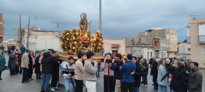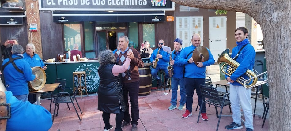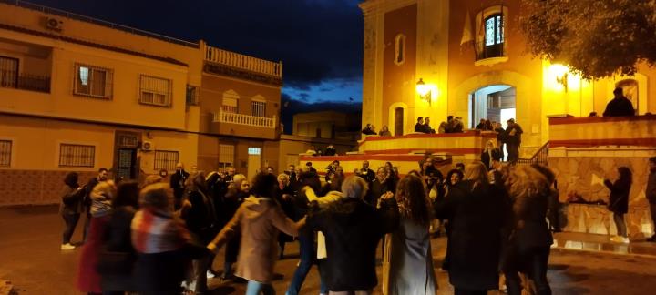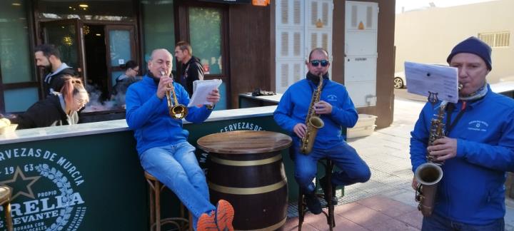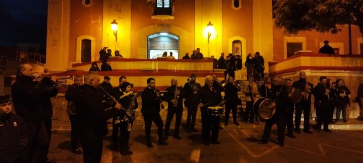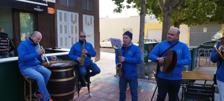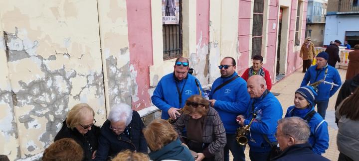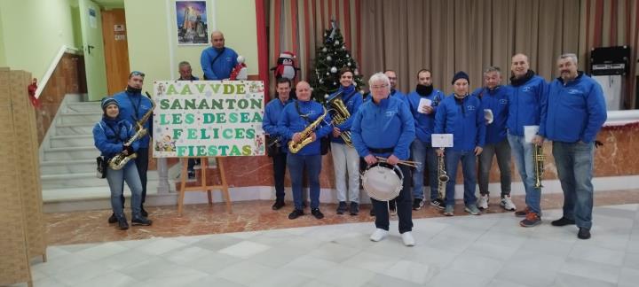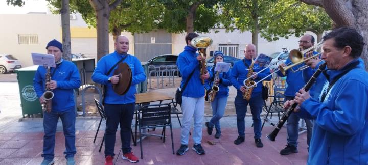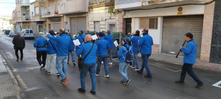 La asociación músico-cultural ha estado en San Antón animando el día grande de sus fiestas patronales de sol a sol, pues comenzó cuando asomaban los primeros rayos y acabó con la recogida nocturna de la procesión, poniendo el colofón una animación ante la fachada de la iglesia.