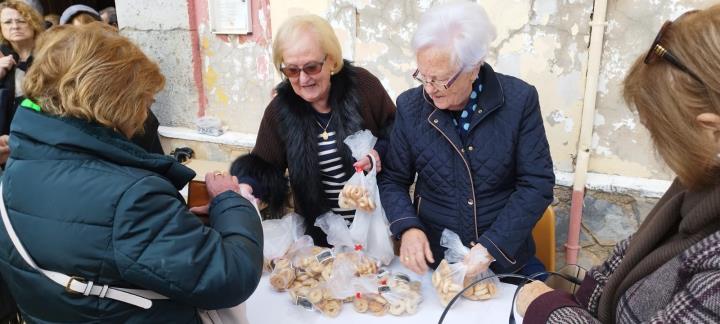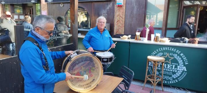 El reportaje adjunto ofrece diversos momentos del completo 18 de enero de los integrantes de 'Cartagena 1990', entre los que no faltaron quienes adquirieron los tipicos rollicos de San Antón.