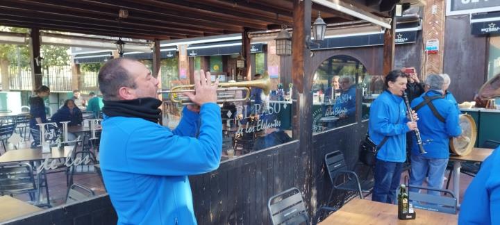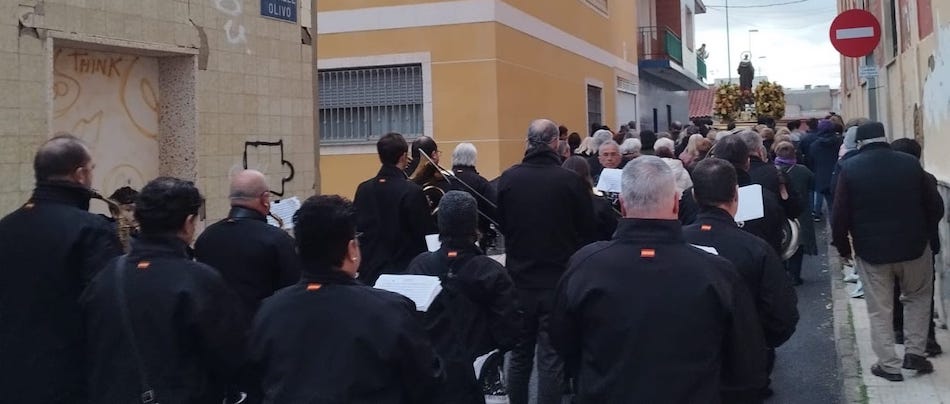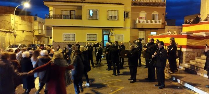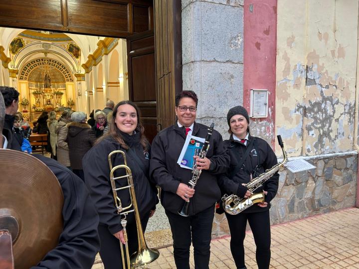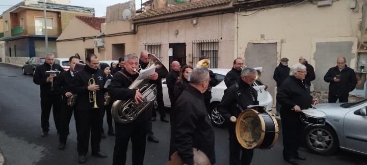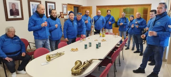 La asociación músico-cultural tuvo un intenso día del patrono de la castiza villa, que comenzó con la callejera diana a las ocho de la mañana, además de acompañar la bendición de animales y otras actividades, culminando con la procesión durante la que entró una fría noche que contrarrestaron poniendo la música a la animación que se desató en la plaza.