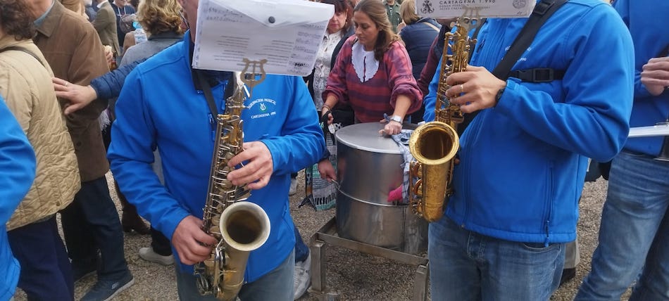 La Asociación Músico-Cultural 'Cartagena 1990', que fue la encargada de animar con su música la jornada en el Huerto de Paco Saura de Pozo Estrecho, ofrece un reportaje gráfico de la degustación popular de pelotas galileas.