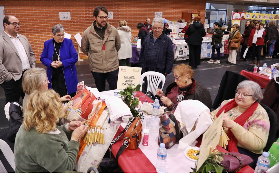El Pabellón Municipal de La Palma ha sido escenario del XXVI Encuentro Nacional de Encajeras de Bolillo, que ha reunido a 400 mujeres y casi una veintena de puestos artesanos, y al que ha asistido el concejal del área de Empleo, Formación y Contratación y del distrito, Álvaro Valdés, quien ha destacado la importancia de este evento para la recuperación y mantenimiento de un arte tradicional destacado de la comarca de Cartagena.