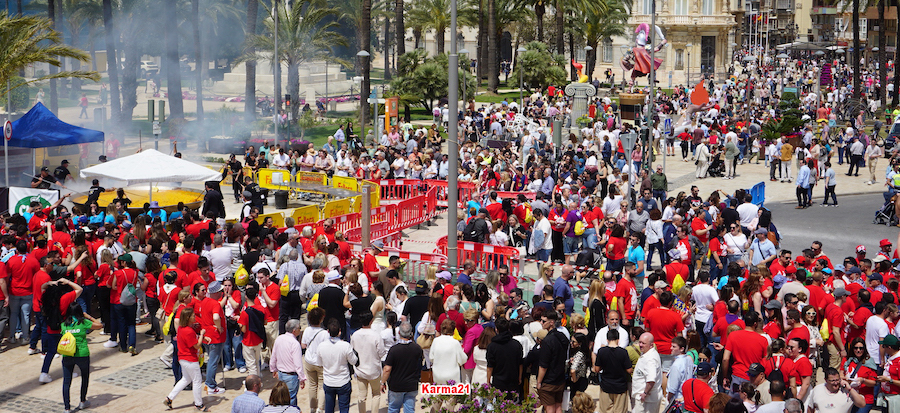 Miles de valencianos han llegado a Cartagena y, como algunos apuntan, el ambiente se parece al de los grandes desplazamientos de aficiones de fútbol cuando su equipo juega una final o un partido decisivo.