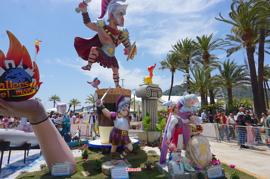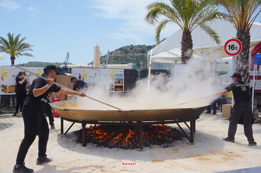 En una mañana soleada y calurosa, el programa de actos ha incluido la crida o pregón desde el balcón del Palacio Consistorial y una mascletá con 100 kilos de pólvora (tiene un artículo propio en este diario) a las 13.15 horas (ha empezado casi puntual) en la pradera de El Batel, para después llevarse a cabo un sonoro pasacalles valencianos, con falleras enriqueciendo la formación, hacia la explanada del puerto, donde estaba la carpa del epicentro gastronómico del día.