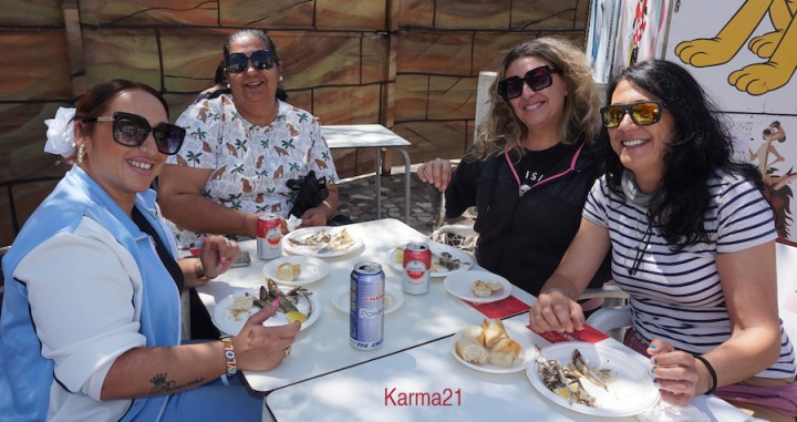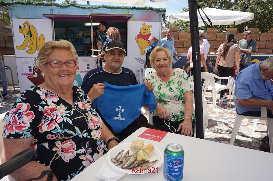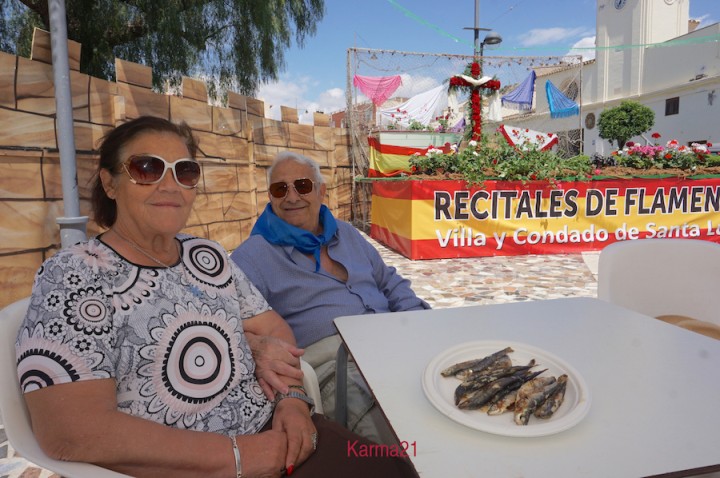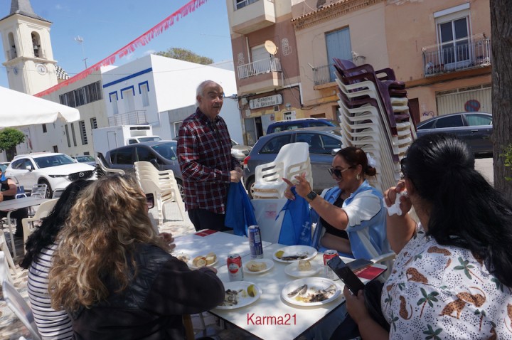 Una moraga de sardinas fue el punto de partida en la mañana del viernes, para por la noche subirse al escenario donde se encuentra la cruz de mayo junto a la barca de ‘Francisco y Leonor’, entre otros adornos pesqueros, rocieros y florados, el grupo chirigotero de ‘Los Picoesquina’, vencedor de las dos últimas ediciones del certamen regional que se celebra en el Carnaval de Cartagena.