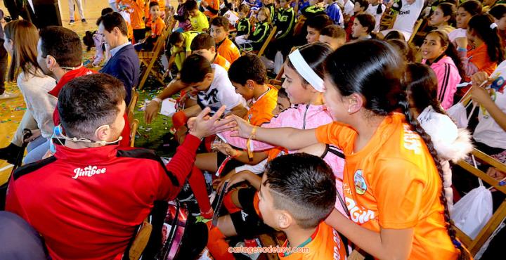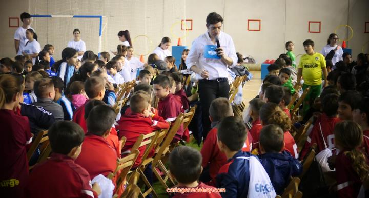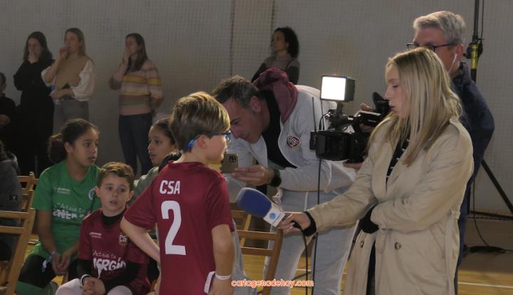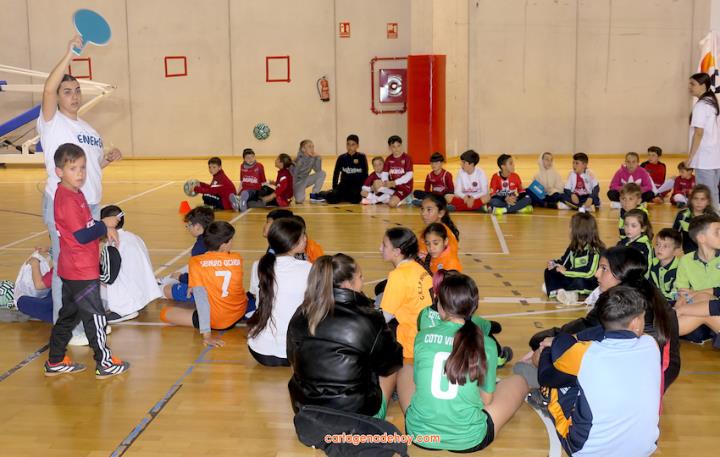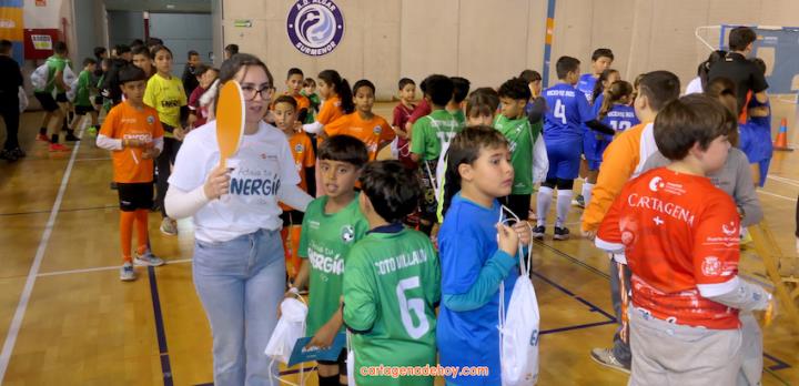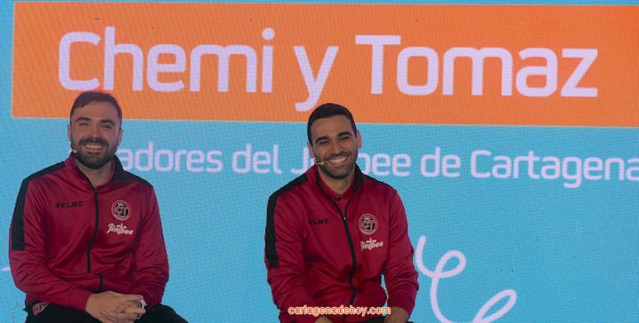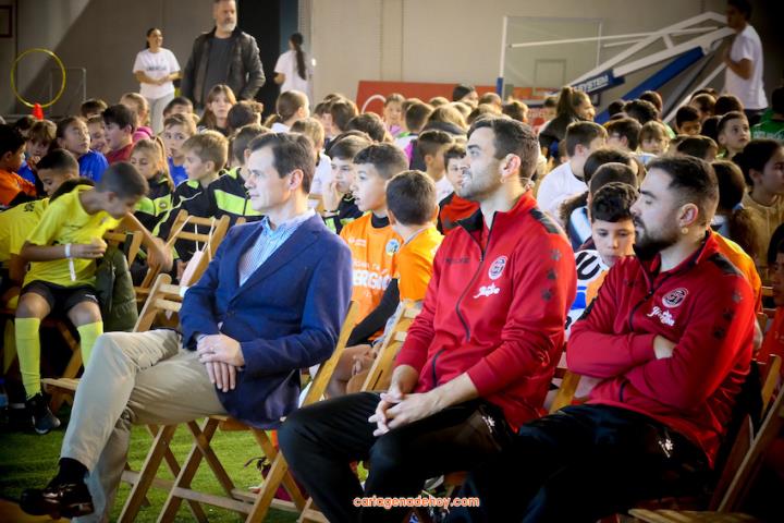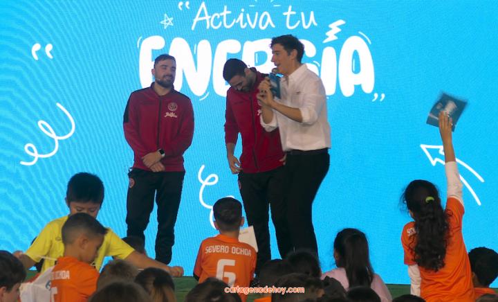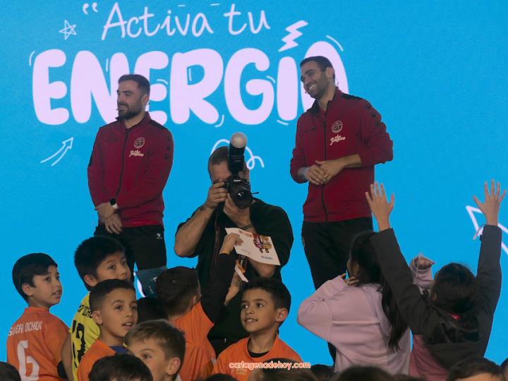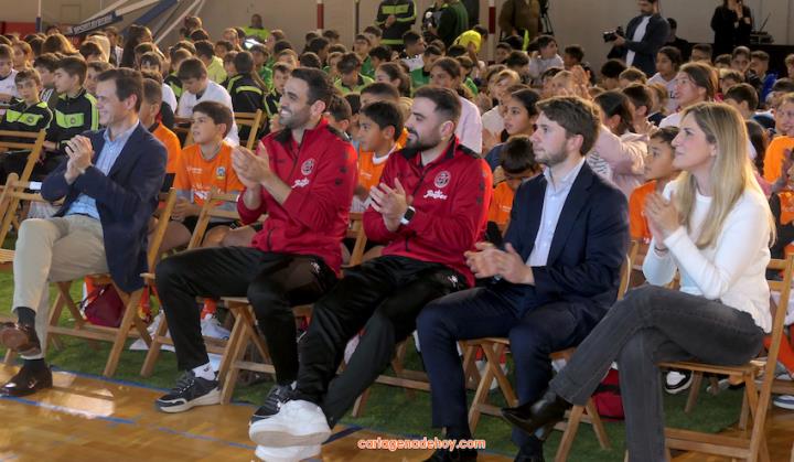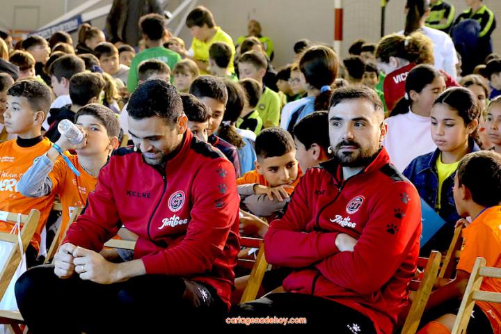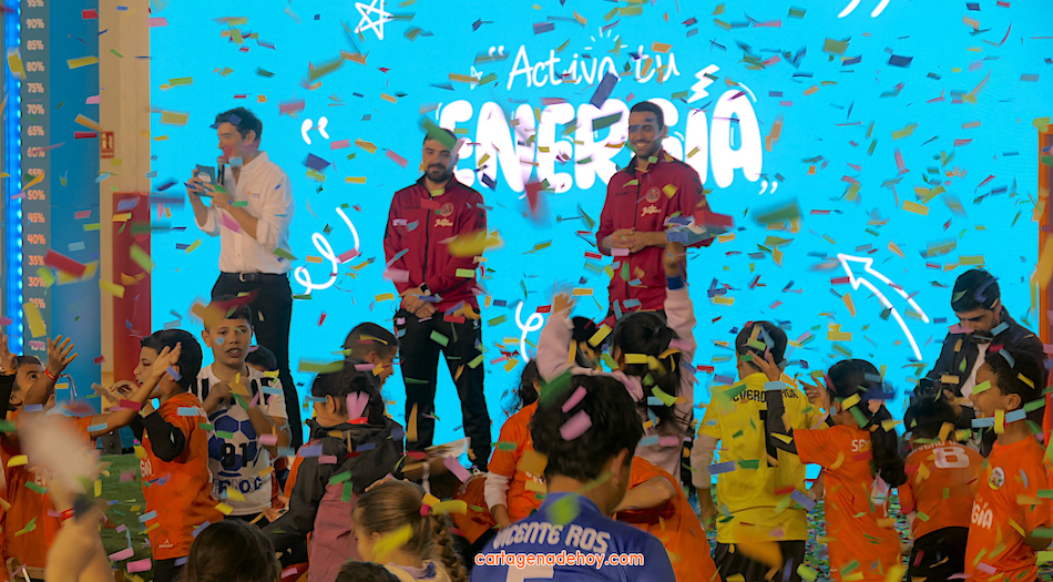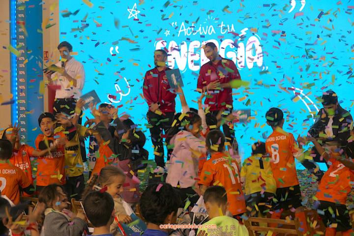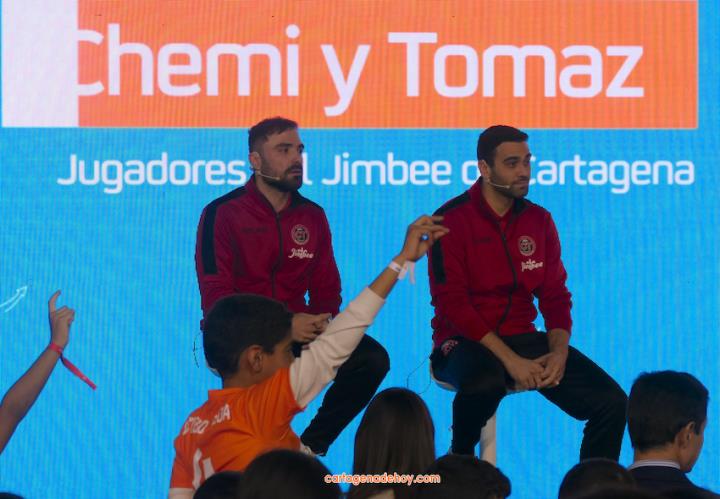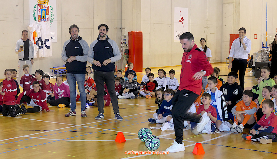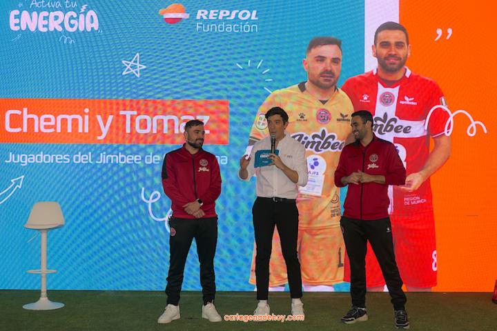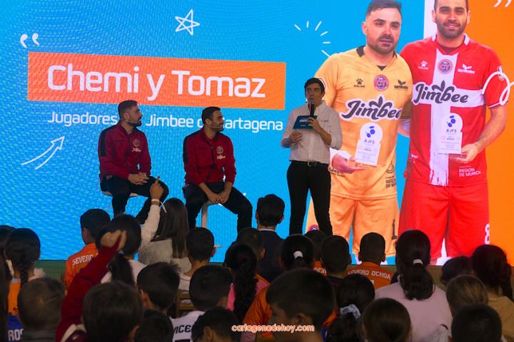 Cartagena ha acogido la presentación de una iniciativa dirigida a más de cuatro mil doscientos niños de 6 a 11 años de edad de la Región de Murcia, pertenecientes a 56 equipos de clubes y colegios, a quienes se facilita un uniforme de juego para sus partidos. Chemi y Tomaz, jugadores del Jimbee Fútbol Sala, fueron entrevistados por los chavales en una tarde animada con diversas actividades.