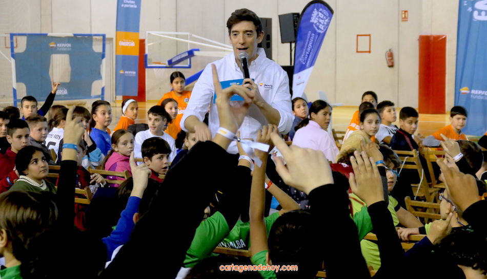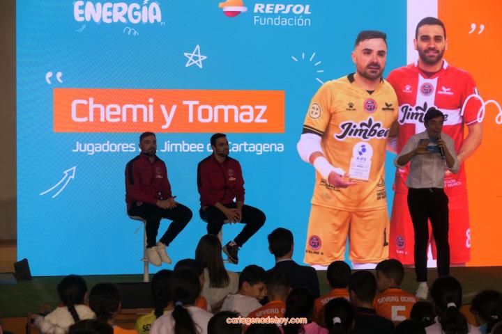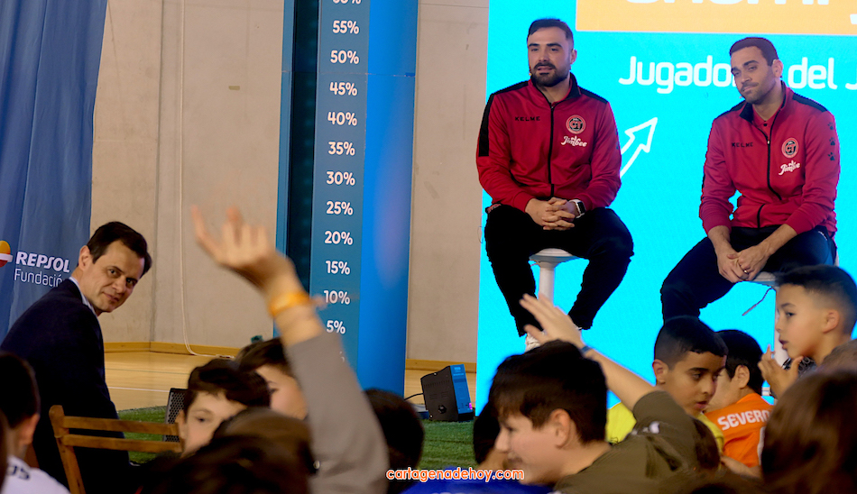 El acto ha servido para presentar la equipación completa que Fundación Repsol ha entregado a más de 4.200 niños y niñas de la Región de Murcia, de 56 centros educativos y clubes deportivos, de los que dos mil son de Cartagena.