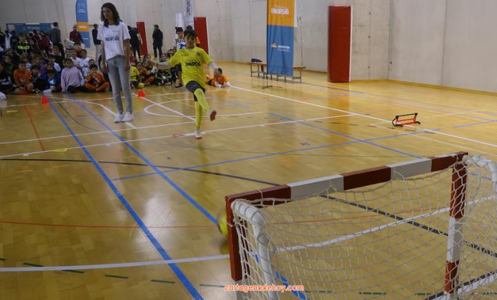 El evento, desarrollado ante un gran pantalla sobre la pista auxiliar de la instalación, ha tenido a Jaime Duque como presentador, quien ha animado la primera hora preguntando a los chavales, para después proyectarse un vídeo de Fundación Repsol relacionado con los valores que se dan en un terreno de juego.
