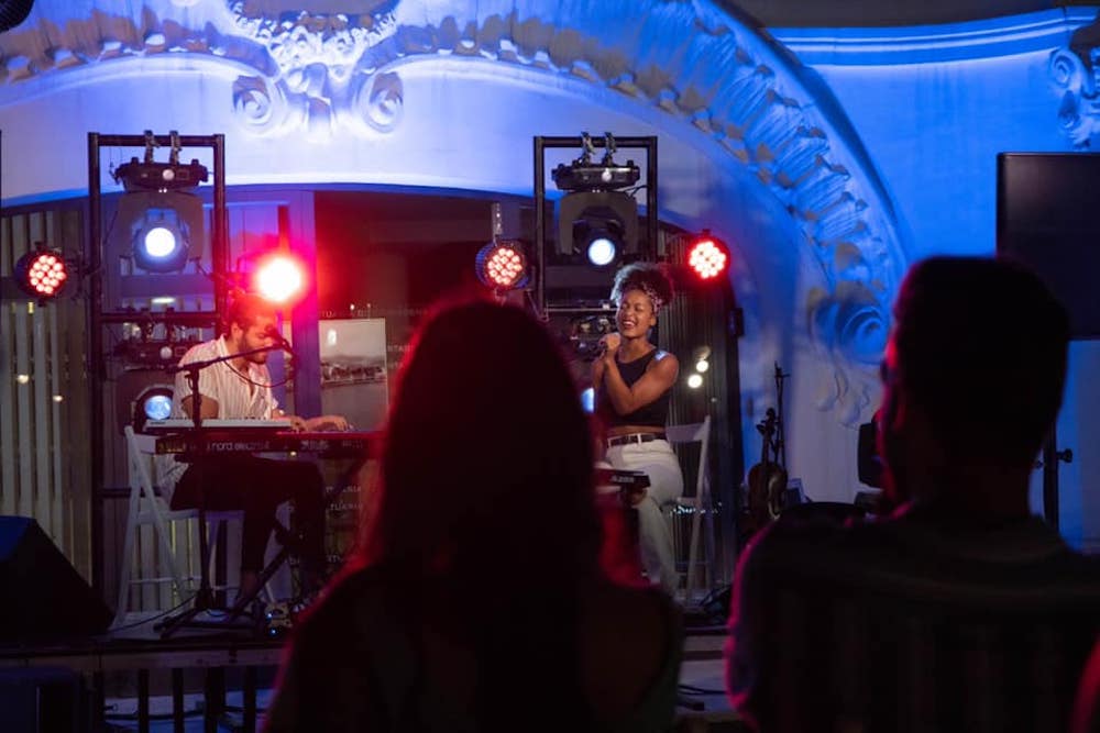Desde hace una semana y hasta el 19 de agosto están pasando diversos artistas por el escenario ubicado junto al antiguo Real Club de Regatas, junto al mar, ofreciendo unos conciertos que agotan las localidades habilitadas, pero que atraen a más personas que pasean de noche por este entorno mientras escuchan las canciones. El ciclo organizado por la Autoridad Portuaria lo iniciaron Pablo de Torres&Xiluva Tomás y continuó con Carmesí el pasado jueves, actuación a la que pertenece la imagen adjunta a estas líneas.