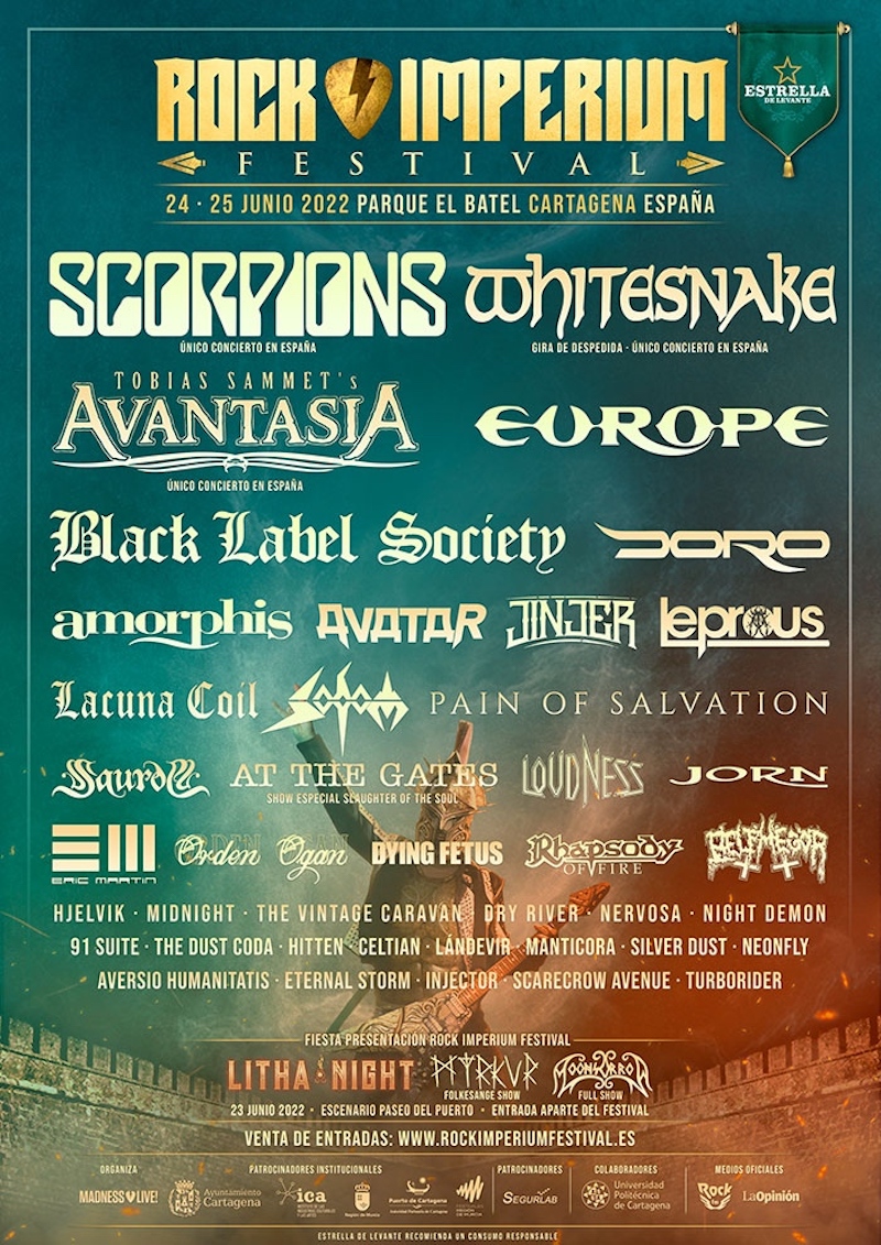 Scorpions, Whitesnake, Tobias Sammet´s Avantasia, Europe, Black Label Society, Doro, Amorphis, Avatar, Jinjer, Leprous, Lacuna Coil, Pain of Salvation, At The gates, Loudnes, Jorn... y los grupos cartageneros Turborider, Scarecrow Avenue e Injector.