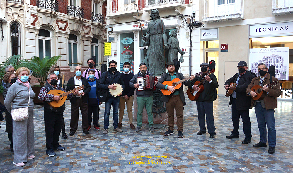 El Grupo Folklórico de La Palma partió de la plaza del Rey, la cuadrilla de Molinos Marfagones lo hizo desde la glorieta de San Francisco, la de Isla Plana se puso en marcha en la calle Campos, Tallante arrancó desde la Cuesta de la Baronesa y La Aljorra se puso a caminar desde la plaza Juan XXIII, confluyendo todos en la plaza de San Sebastián junto a la cuadrilla y escuela bolera de Fuente Álamo, invitada para este evento, que llegó desde la calle del Carmen.