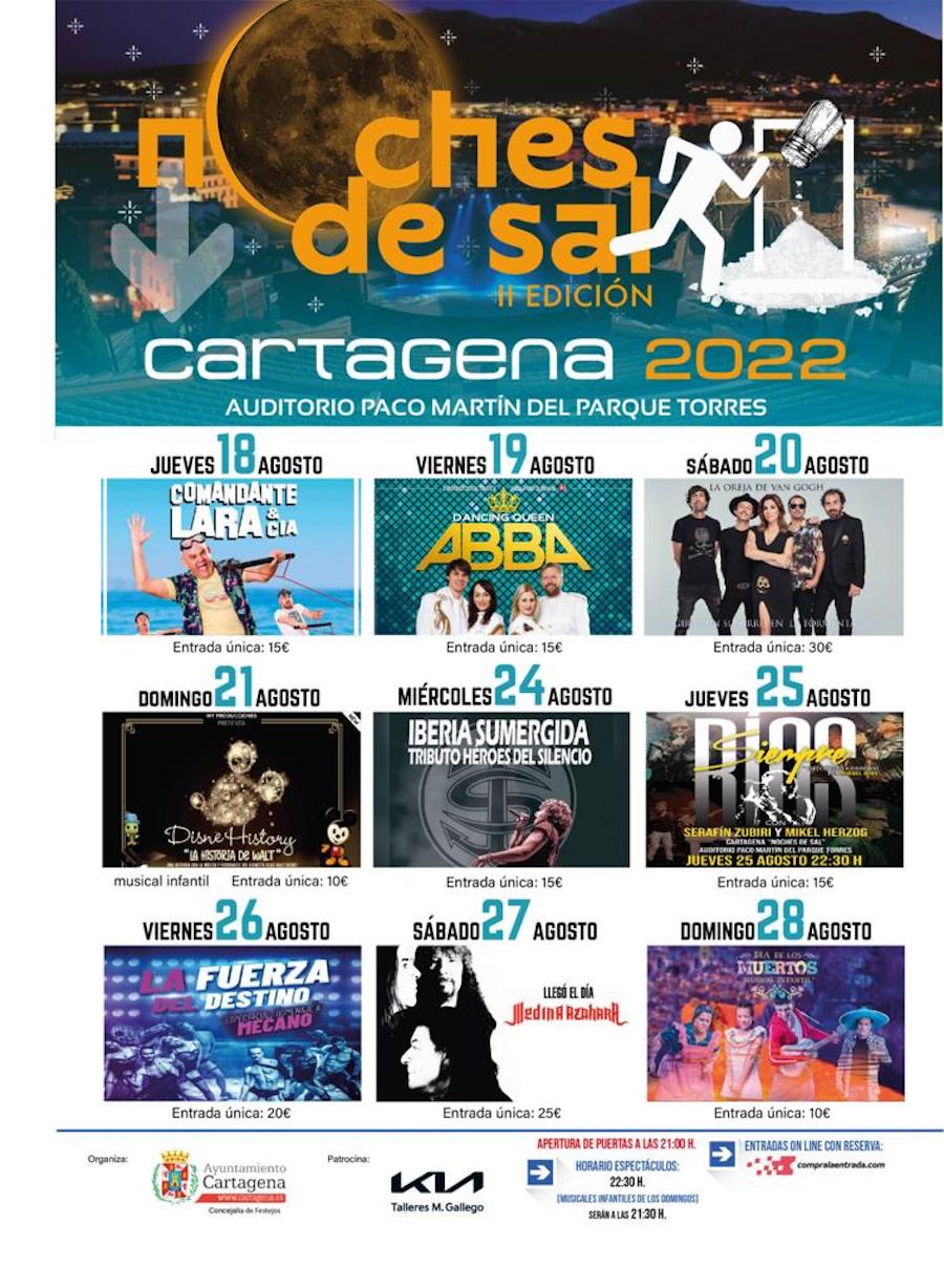 El humorista gaditano estará en el auditorio ‘Paco Martín’ del Parque Torres el 18 de agosto y en los días siguientes pasarán por el escenario ‘La oreja de Van Gogh’, Meidna Azahara, Serafín Zubiri y Míker Herzog, entre otros, además de los tributos a Abba, Héroes del Silencio y Mecano. Organiza la concejalía de Festejos del Ayuntamiento de Cartagena.