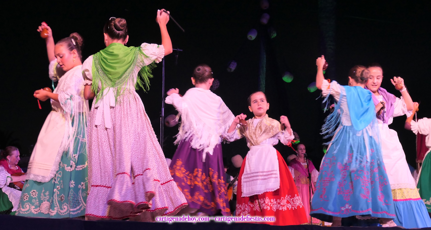 Por el escenario también pasaron tres grupos más, cada uno con su sello de identidad y todos con un espectáculo brillante. Comenzó con ‘Abuela Santa Ana’ de Albacete, continuó con los muricnaos del grupo de coros y danzas ‘Francisco Salzillo’, también de larga trayectoria, y concluyó con un estilo distinto pero igual de brillante a cargo de coros y danzas ‘Villa de Leganés’ de Madrid, aunque en realidad muestra sus raíces de otras tierras, siendo su sede la Casa de Extremadura de la localidad madrileña.