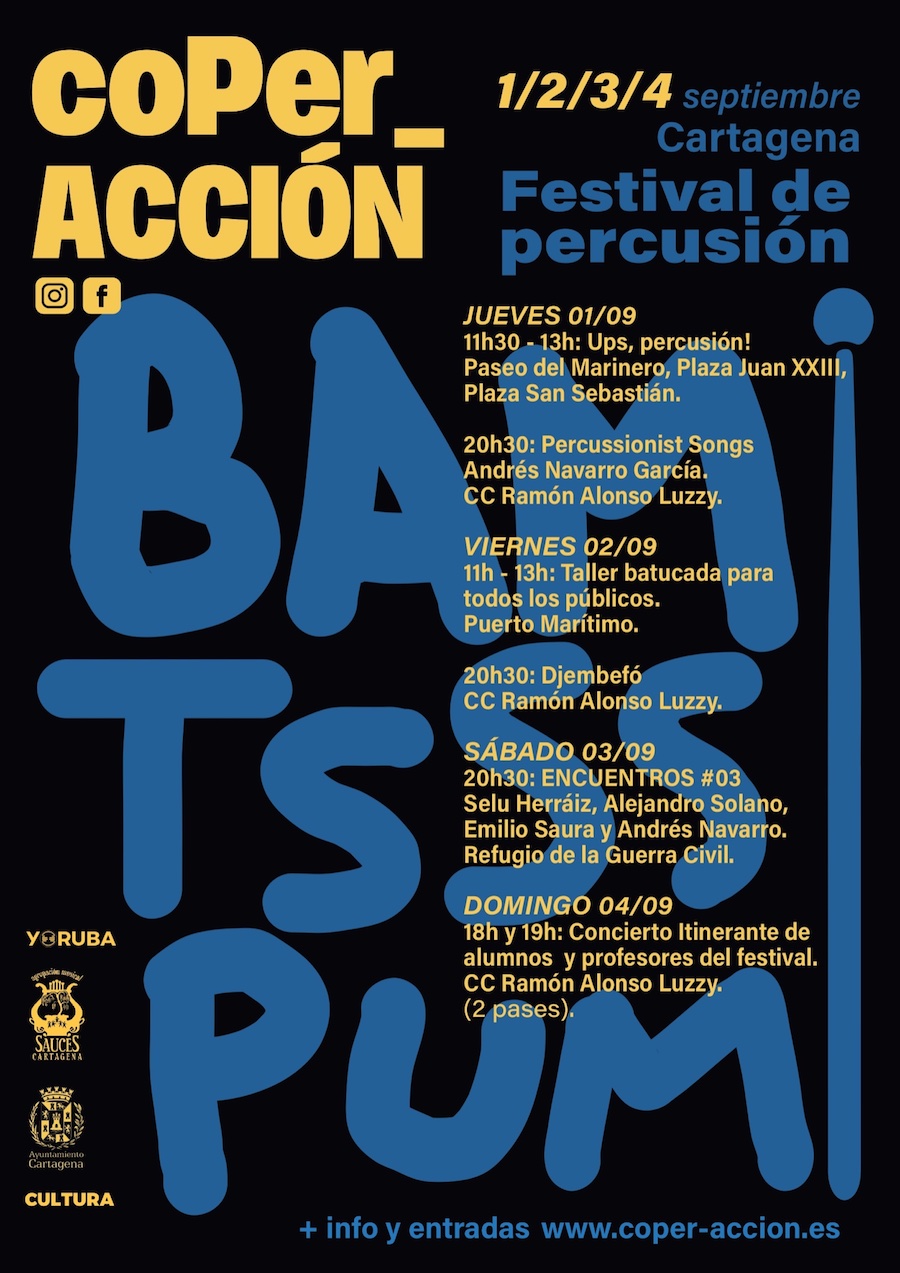 El festival de percusión coPer_ACCIÓN celebra su IV edición en Cartagena durante los días 1, 2, 3 y 4 de Septiembre.