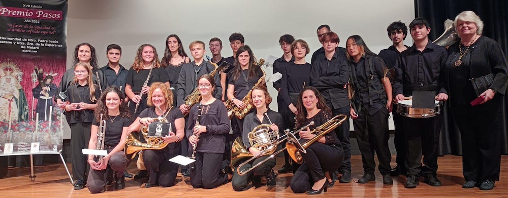 'Musiquitas', como indicamos en la crónica de la entrega del galardón, ya no es un grupo exclusivamente femenino y esta foto es historia en la agrupación al ofrecer también componentes masculinos.